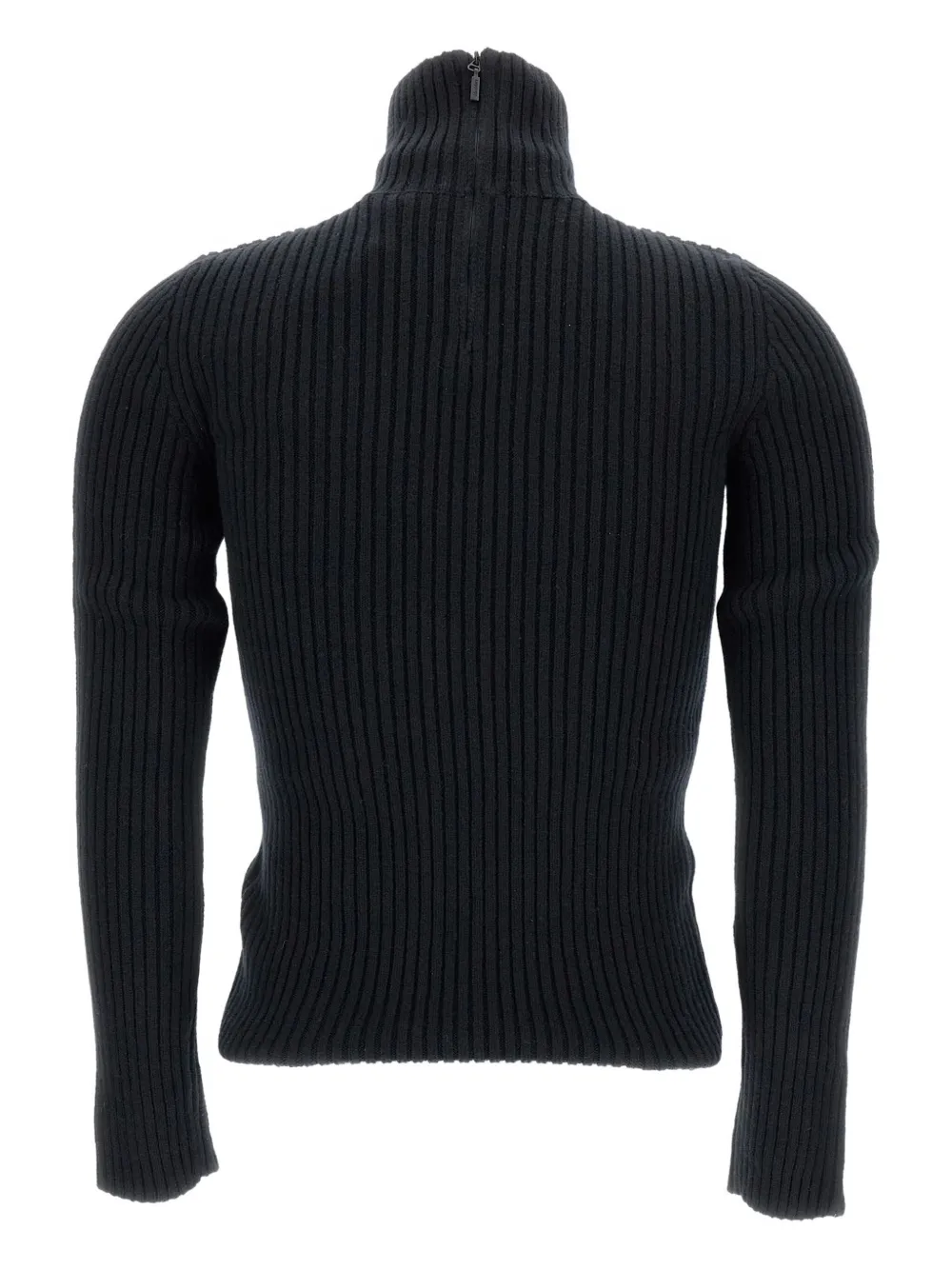 Черная водолазка в рубчик с длинными рукавами и наполовину застегивающейся молнией
