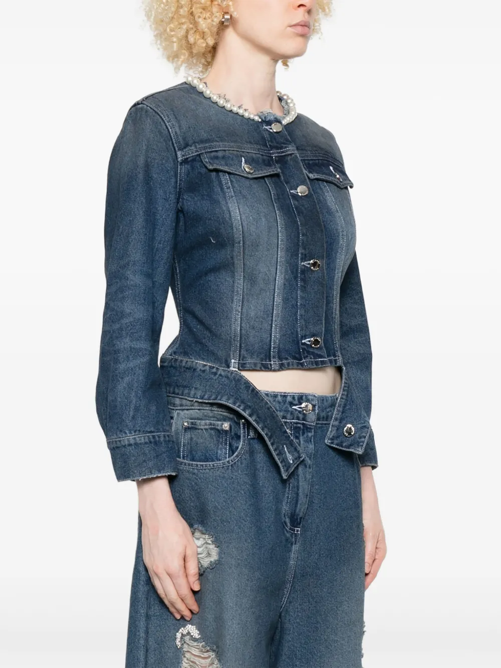 Джинсовая куртка, украшенная жемчугом Simone Rocha, синий