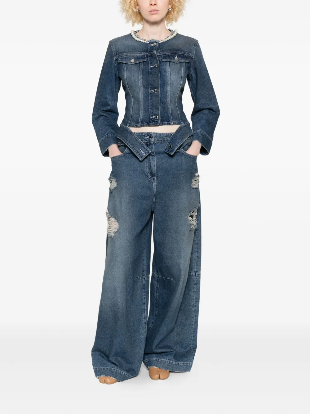 Джинсовая куртка, украшенная жемчугом Simone Rocha, синий 57 758₽