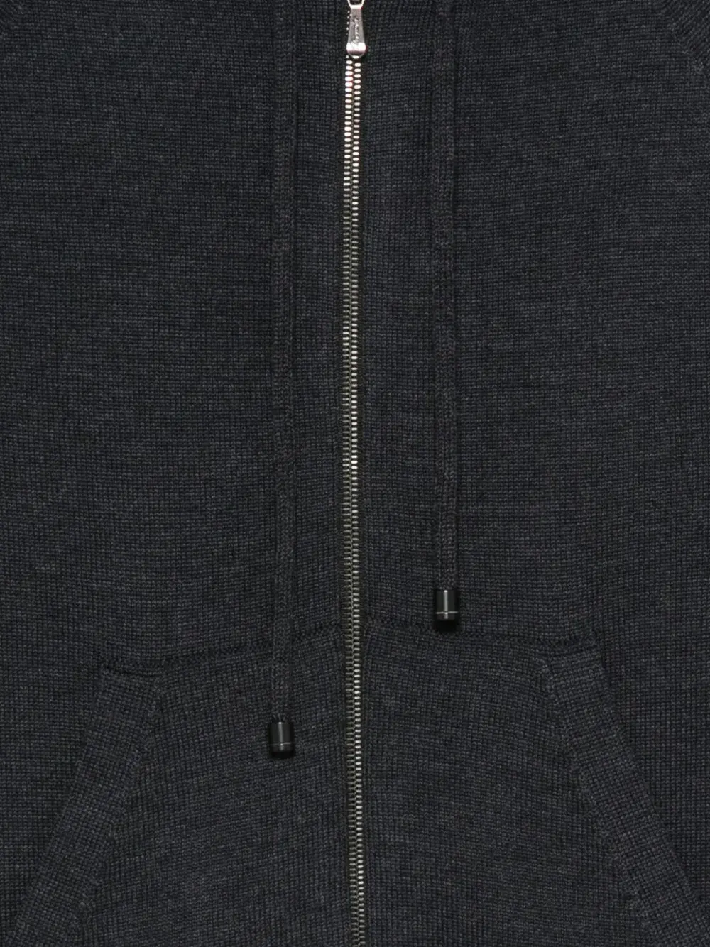 Серый капюшон застежка-молния длинные рукава рубчатый край