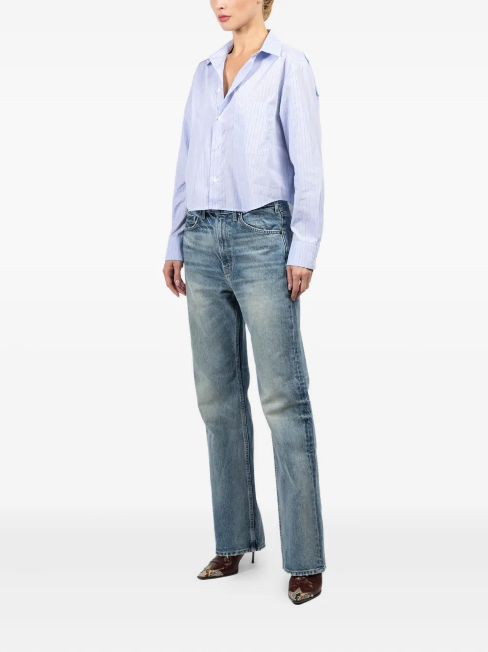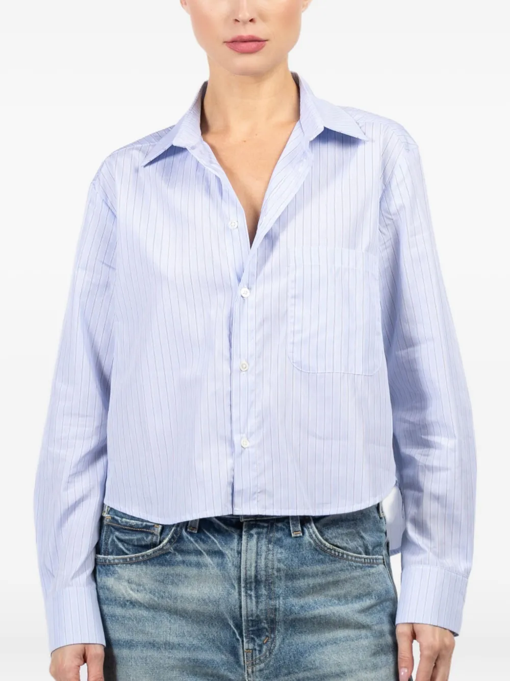 Светло-голубой длинные рукава застежка на пуговицы нагрудный карман