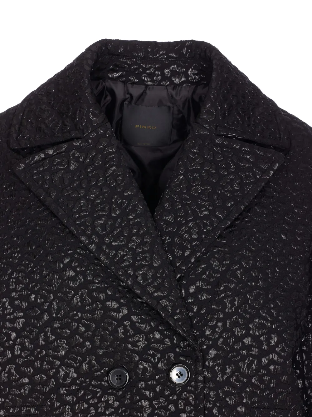 Черный двубортный пиджак с заостренными лацканами и длинными рукавами