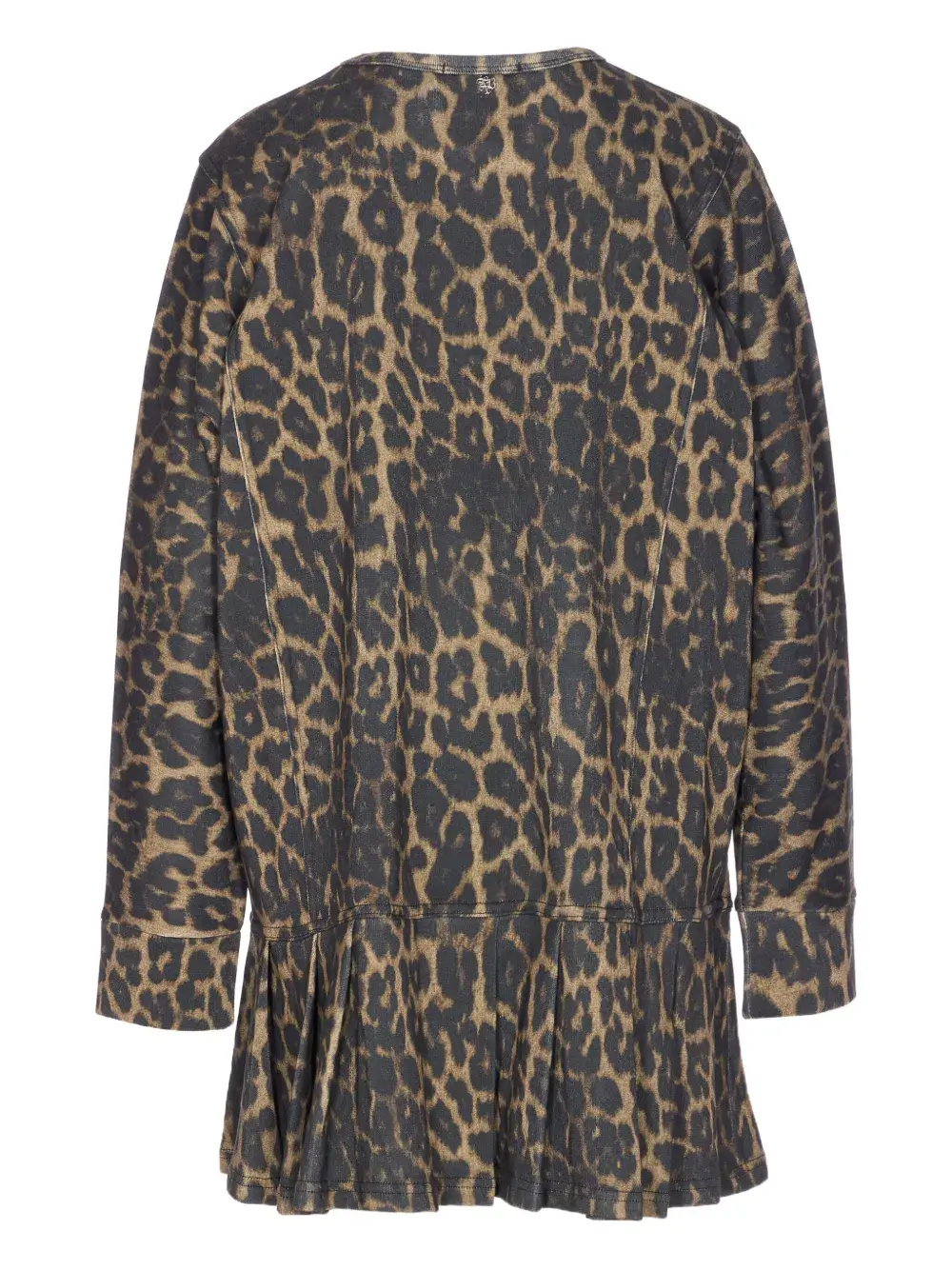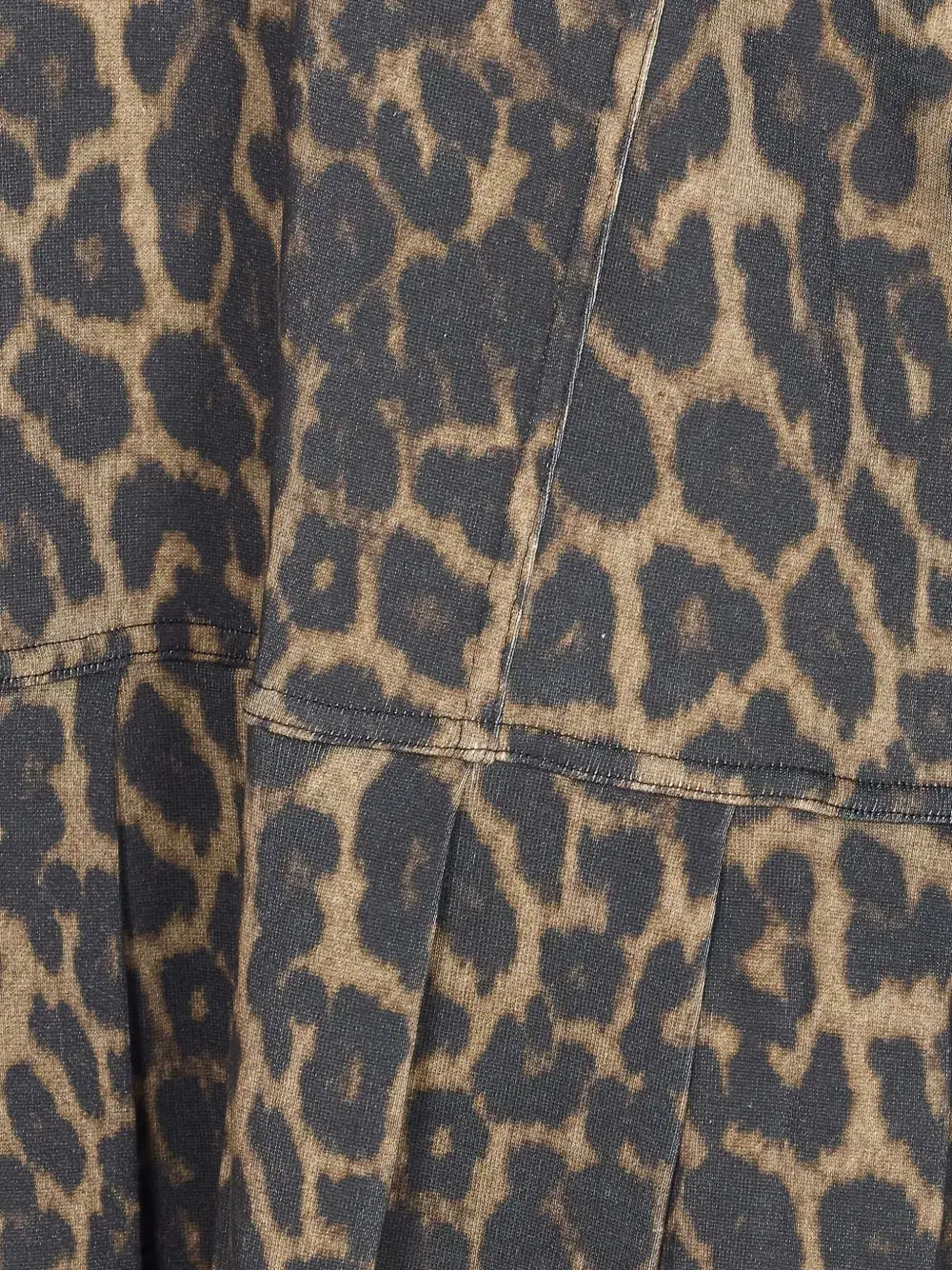 Коричневый леопардовый принт круглый вырез длинные рукава хлопок