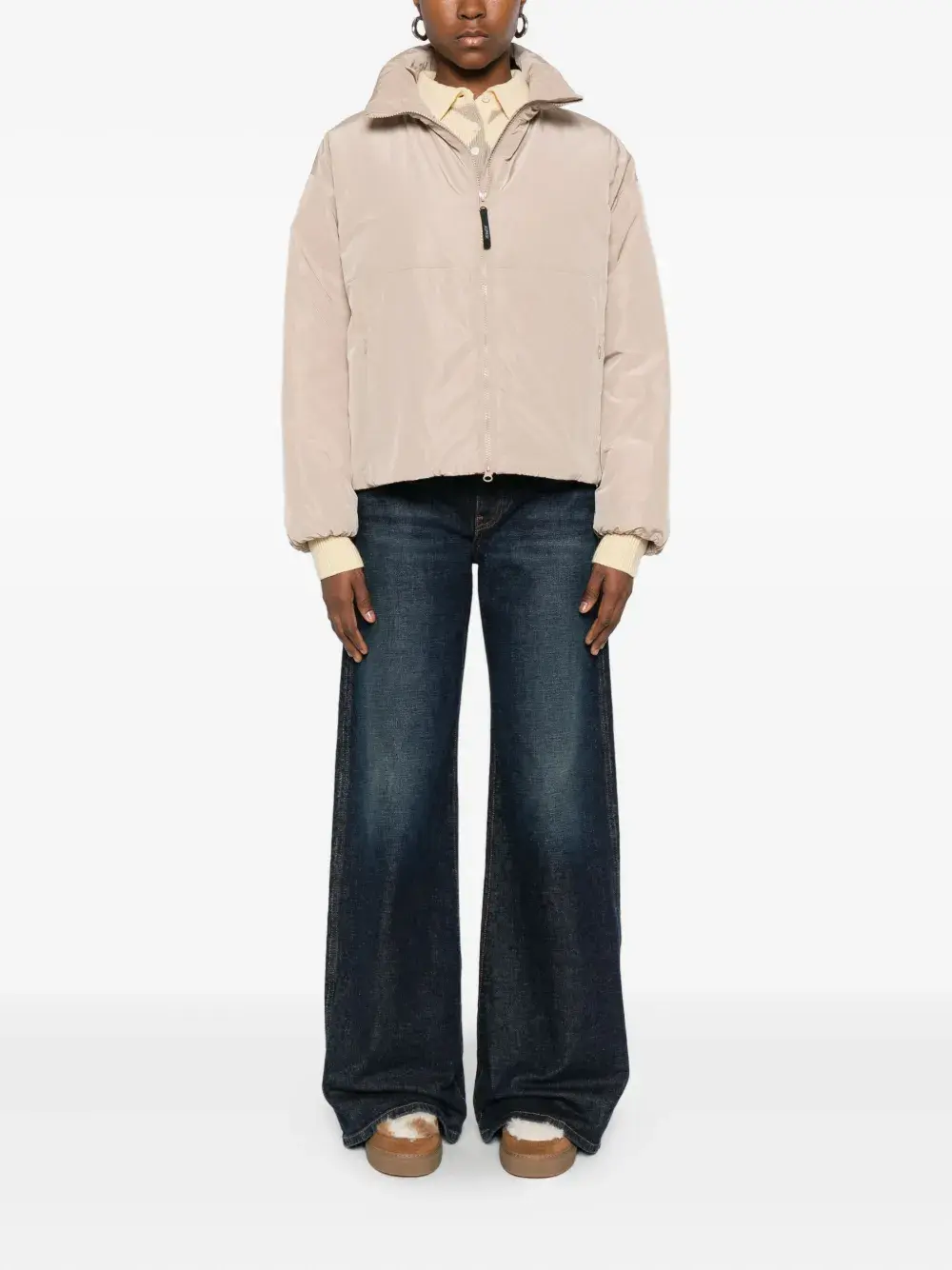 Песочно-бежевый застежка-молния спереди высокий воротник карманы спереди на молнии длинные рукава прямой подол