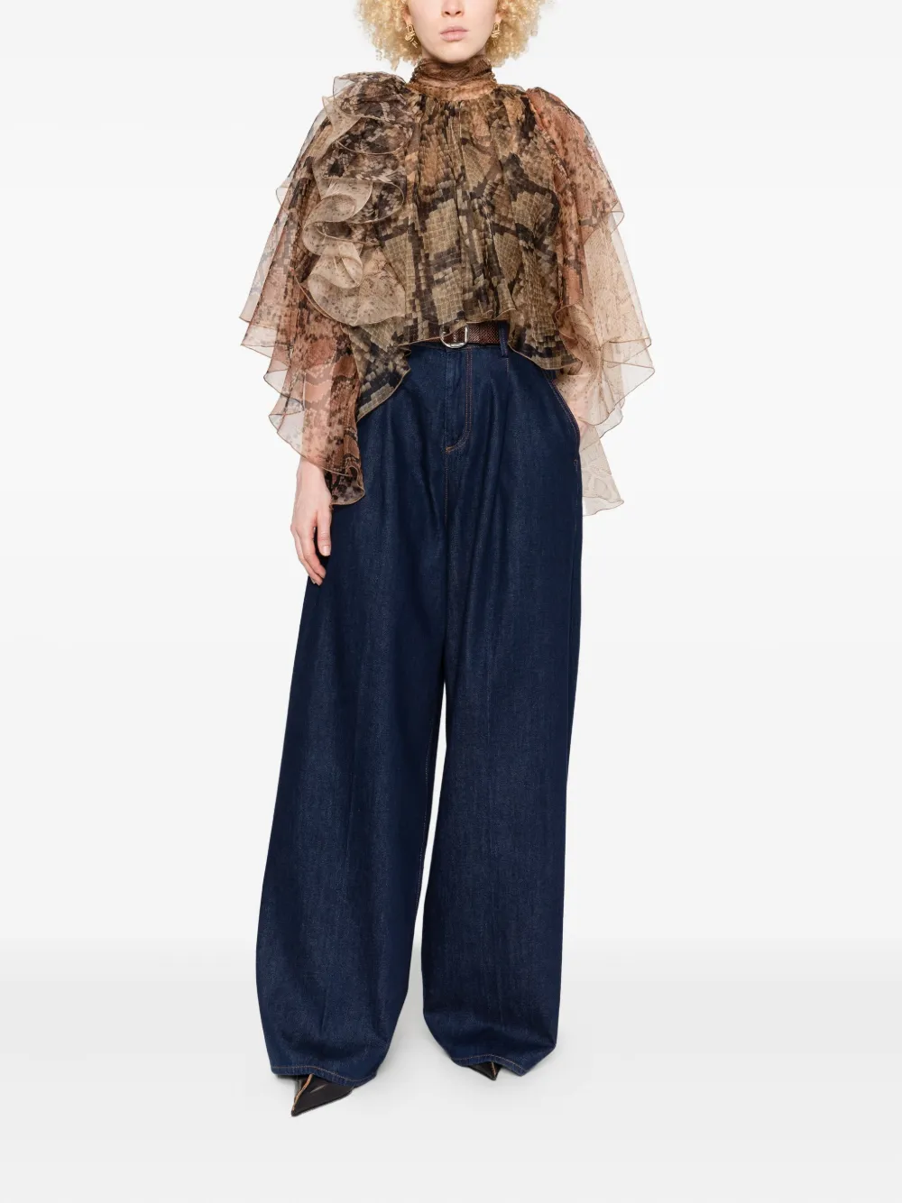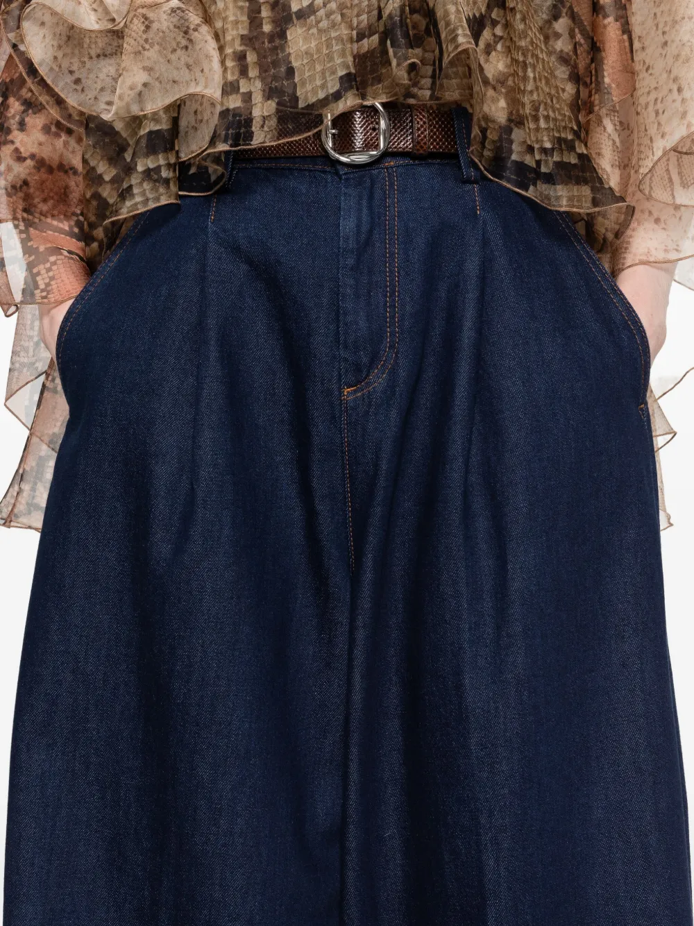 Темно-синий плиссированная передняя часть боковые прорезные карманы застежка на пуговицу и молнию широкие брючины