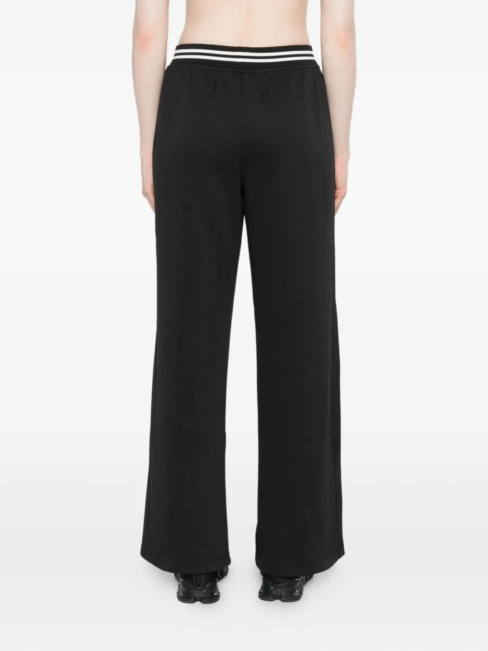 Черный эластичный пояс боковые разрезы небольшая нашивка с логотипом прямые брючины гладкая передняя часть