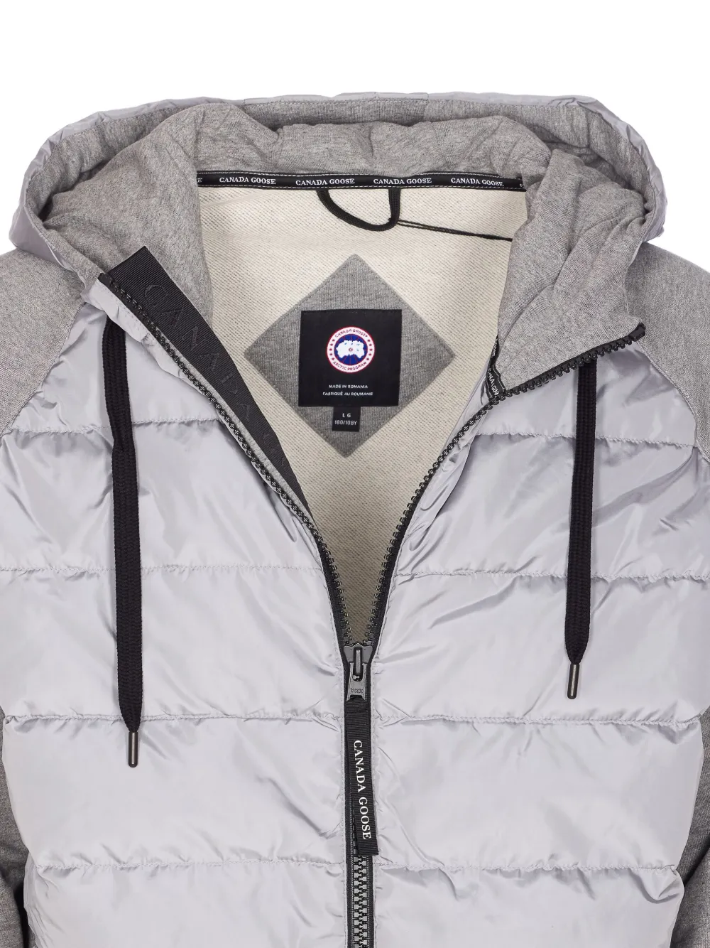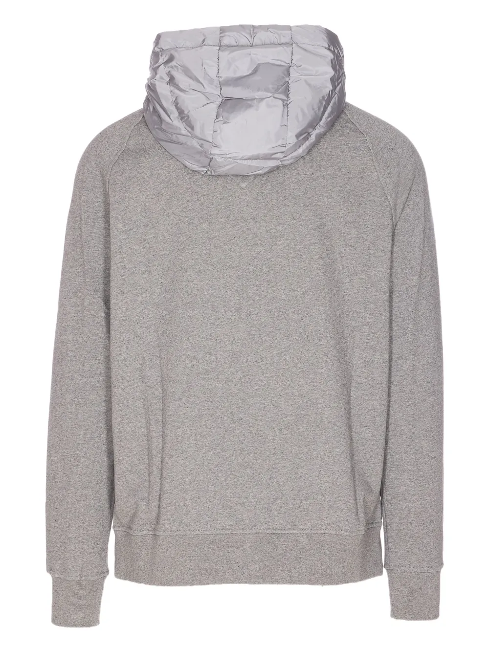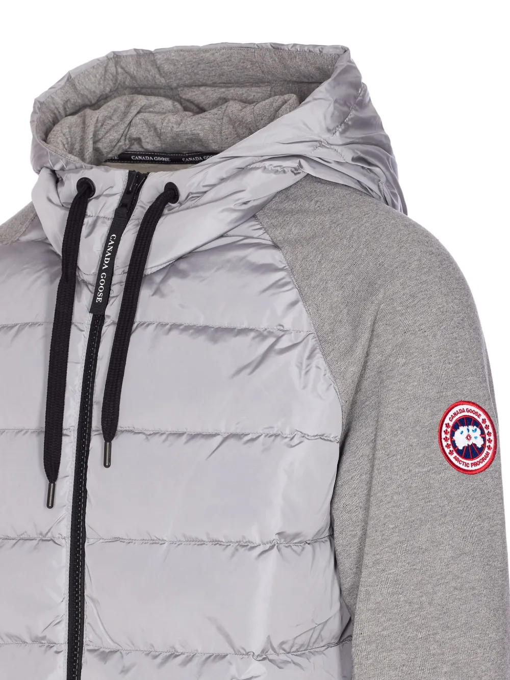 Серые стеганые вставки, капюшон, длинные рукава, нашивка с логотипом, застежка на молнию