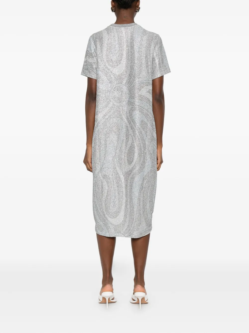 Платье с короткими рукавами и блестящим узором PUCCI, серый