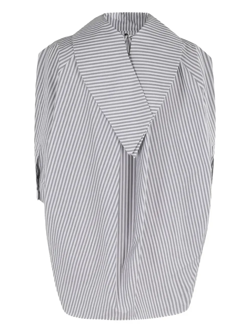 Темно-пепельно-серый полосатый узор широкий воротник вышитый элемент рукава три четверти