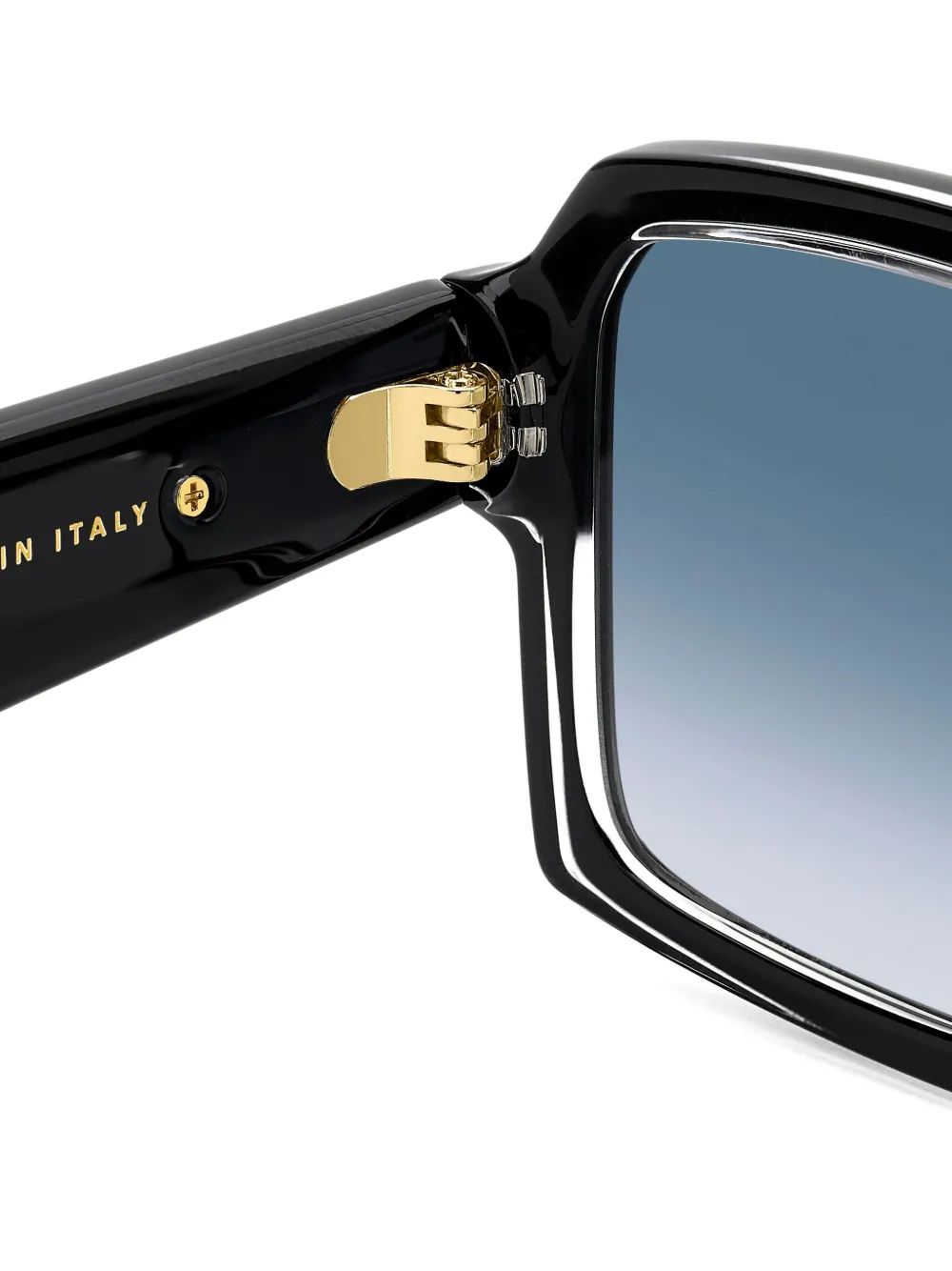 Черная геометрическая оправа градиентные линзы отделка под золото деталь с логотипом. Эти очки идут в защитном футляре.