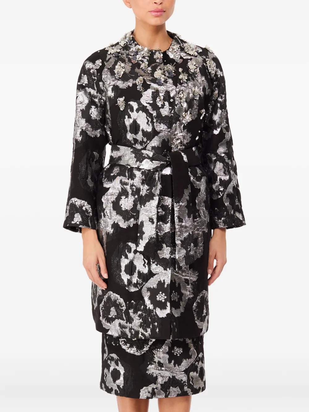 Украшенное цветами пальто Jenny Packham, черный