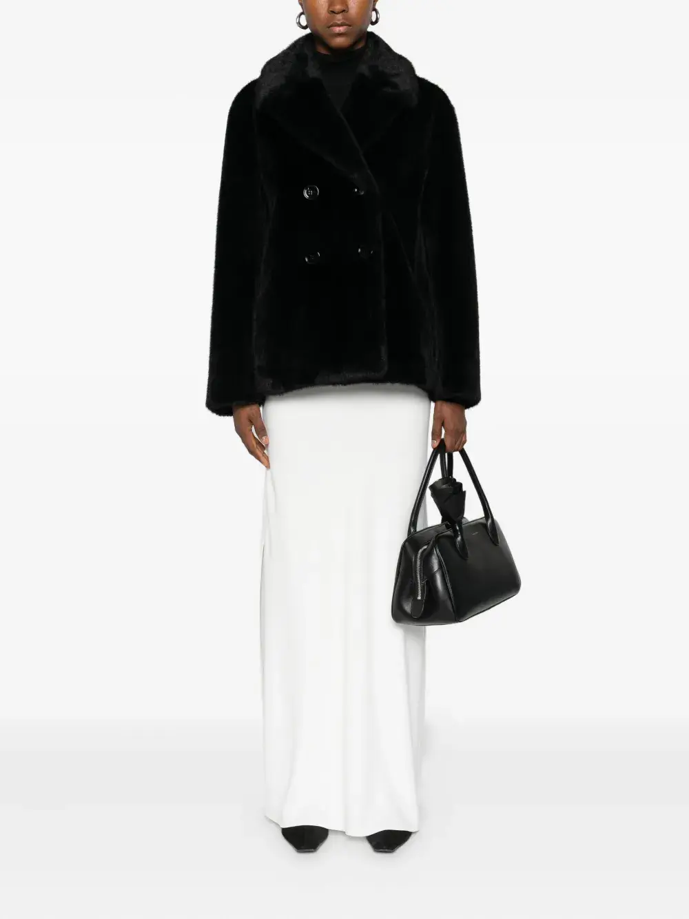Черный застежка на два ряда пуговиц лацканы с вырезом