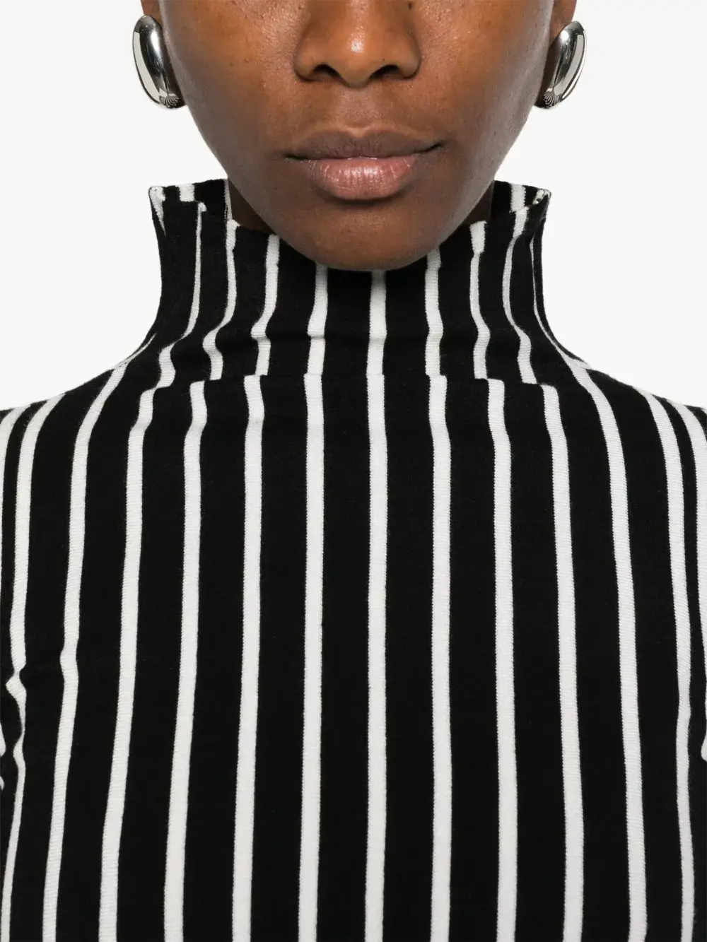Черный вертикальные полосы высокий воротник длинные рукава рубчатая фактура