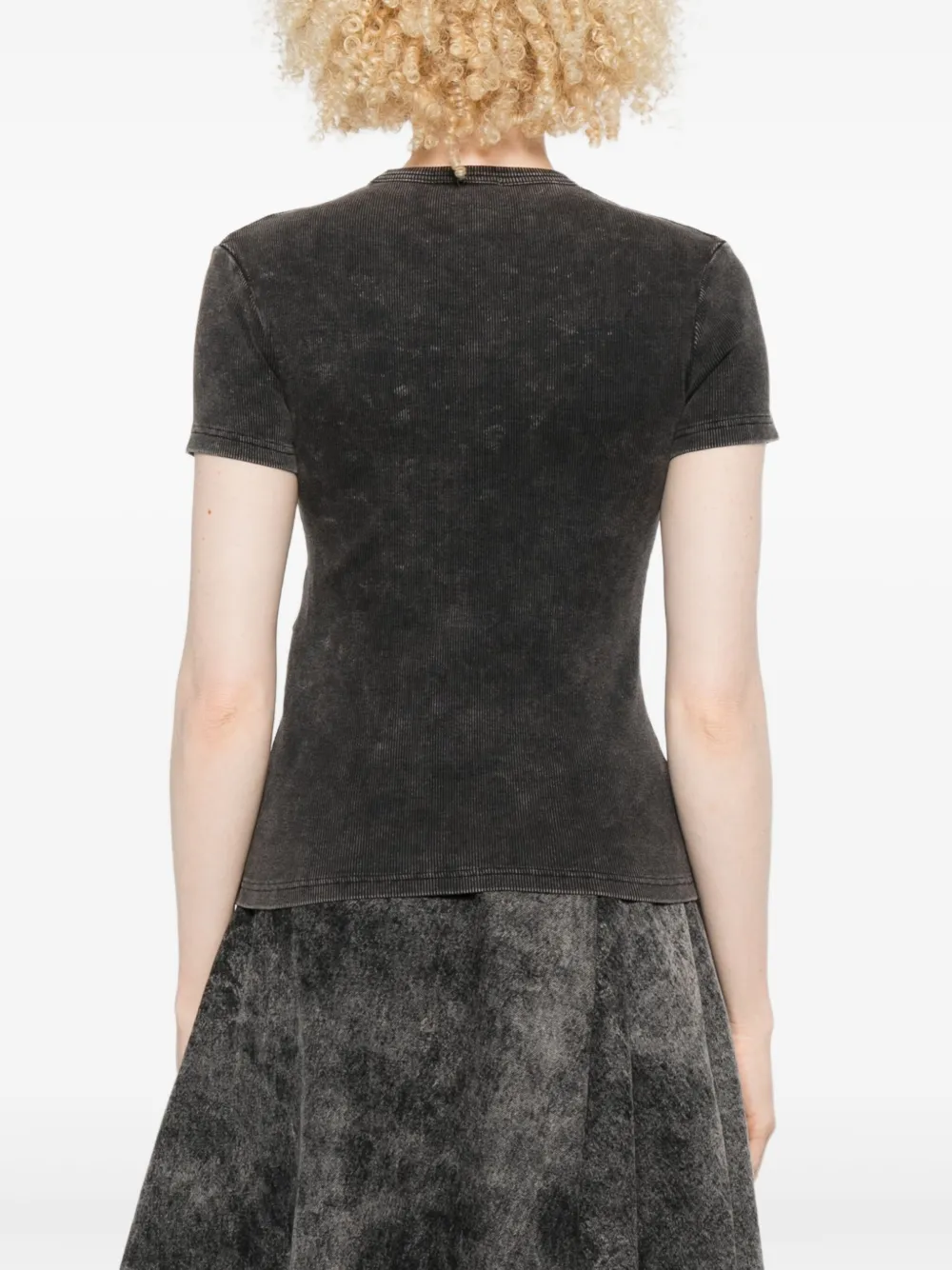 Темно-серый рубчатая текстура короткие рукава круглый вырез вышитый логотип