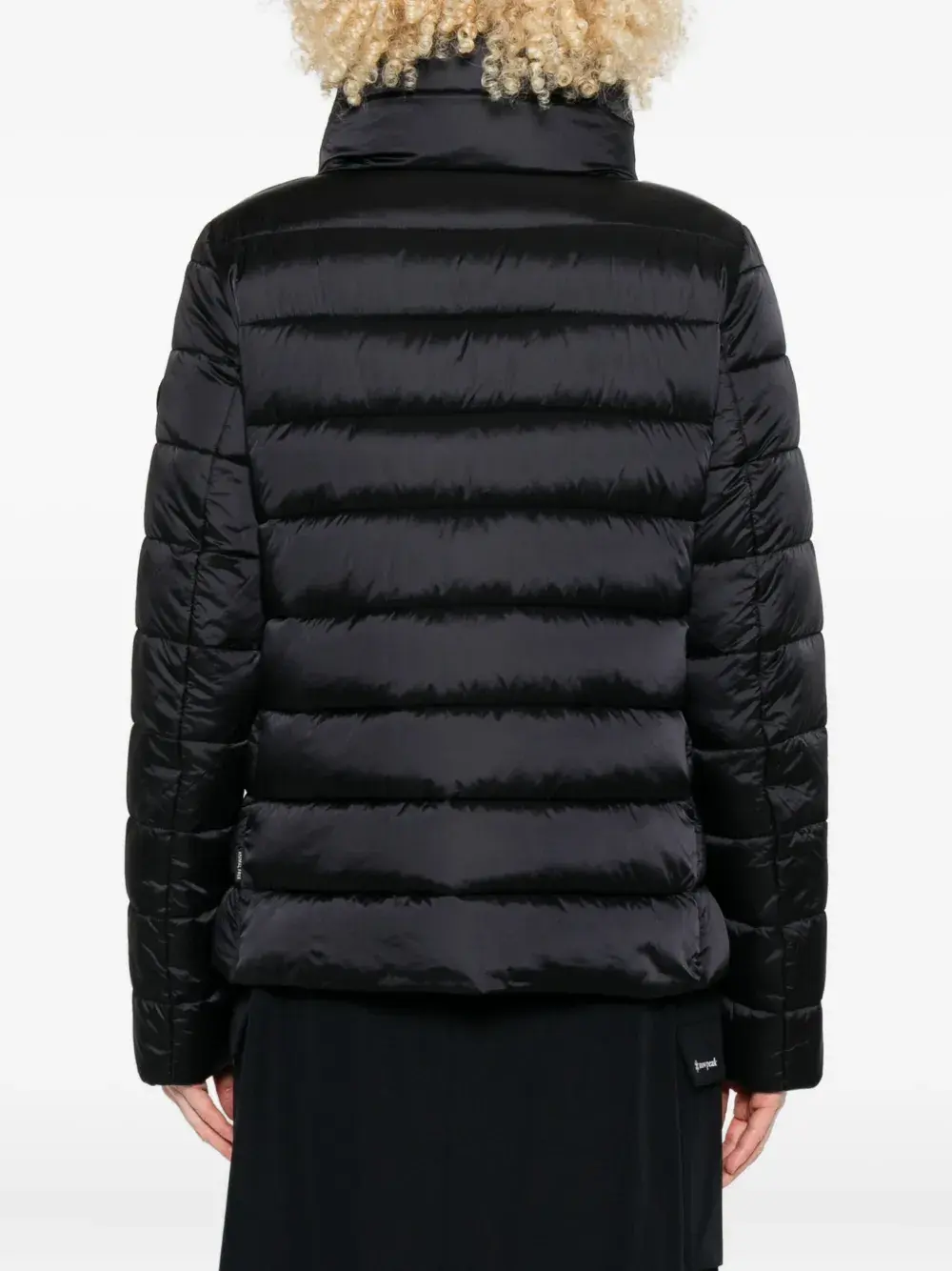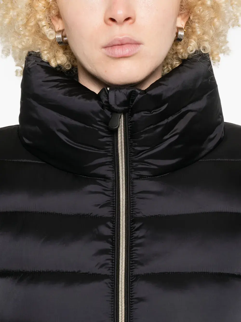 Черный стеганый высокий воротник двусторонняя молния длинные рукава прямой подол