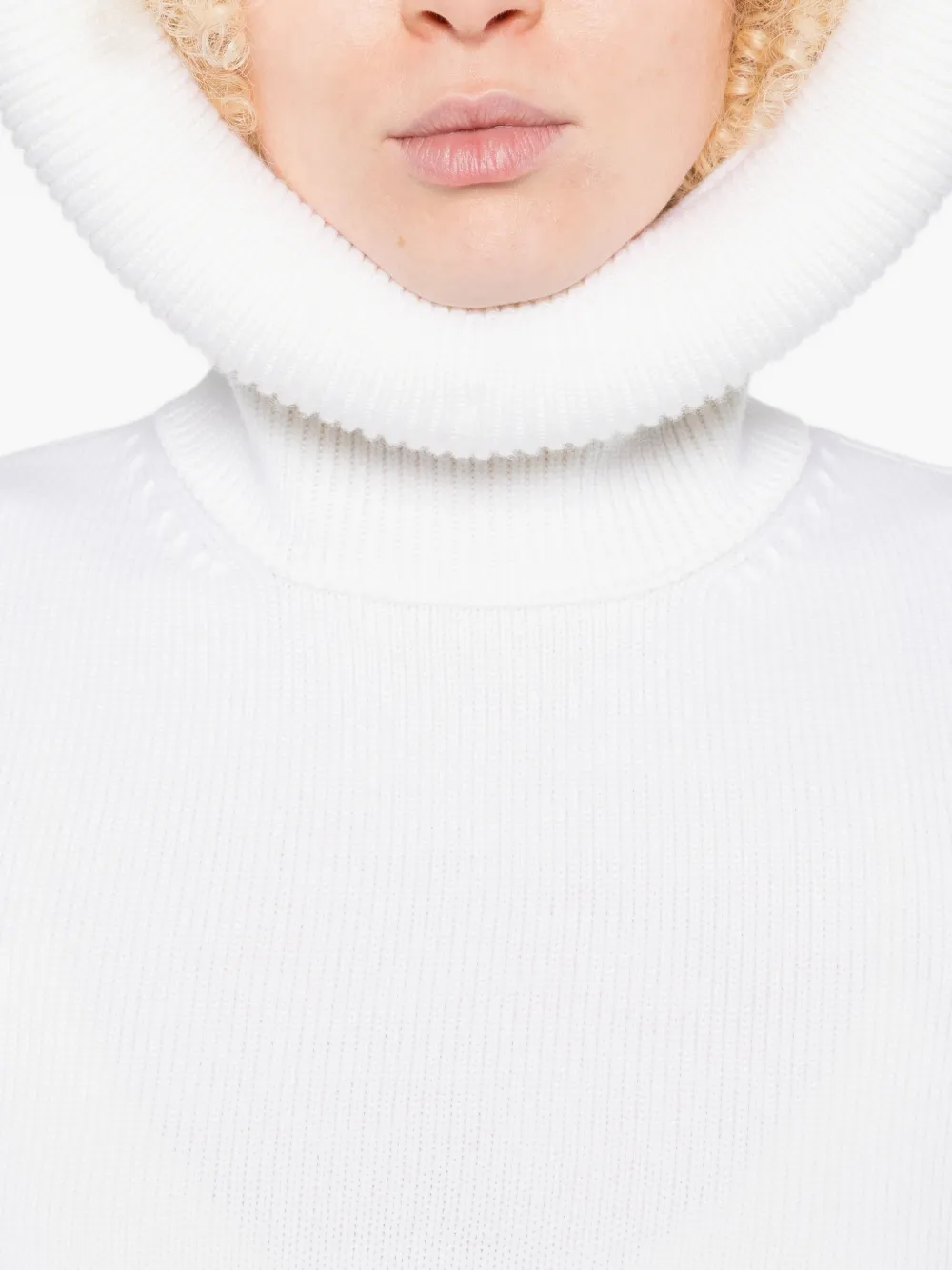 Белый водолазка с ребристыми деталями и длинными рукавами