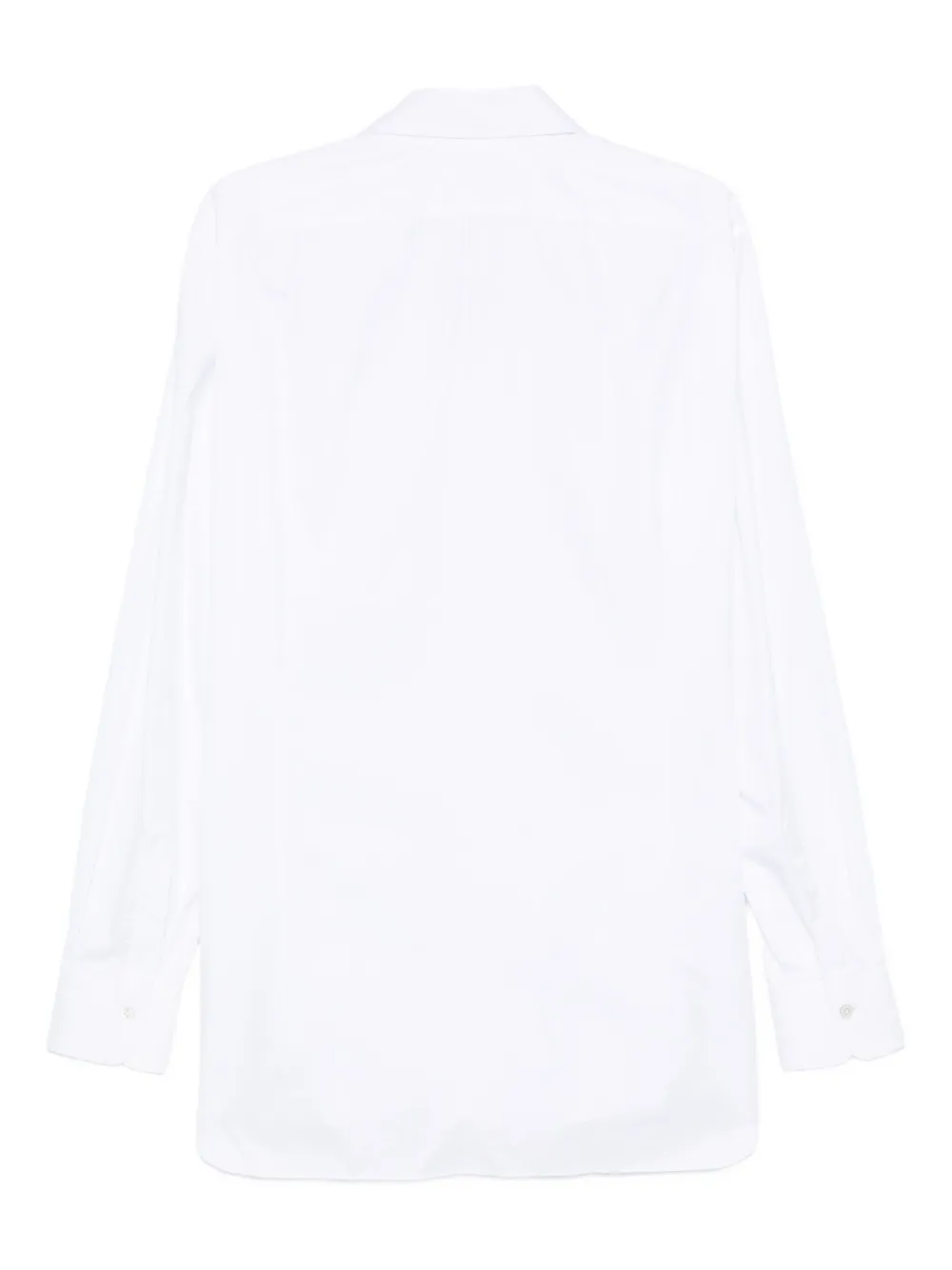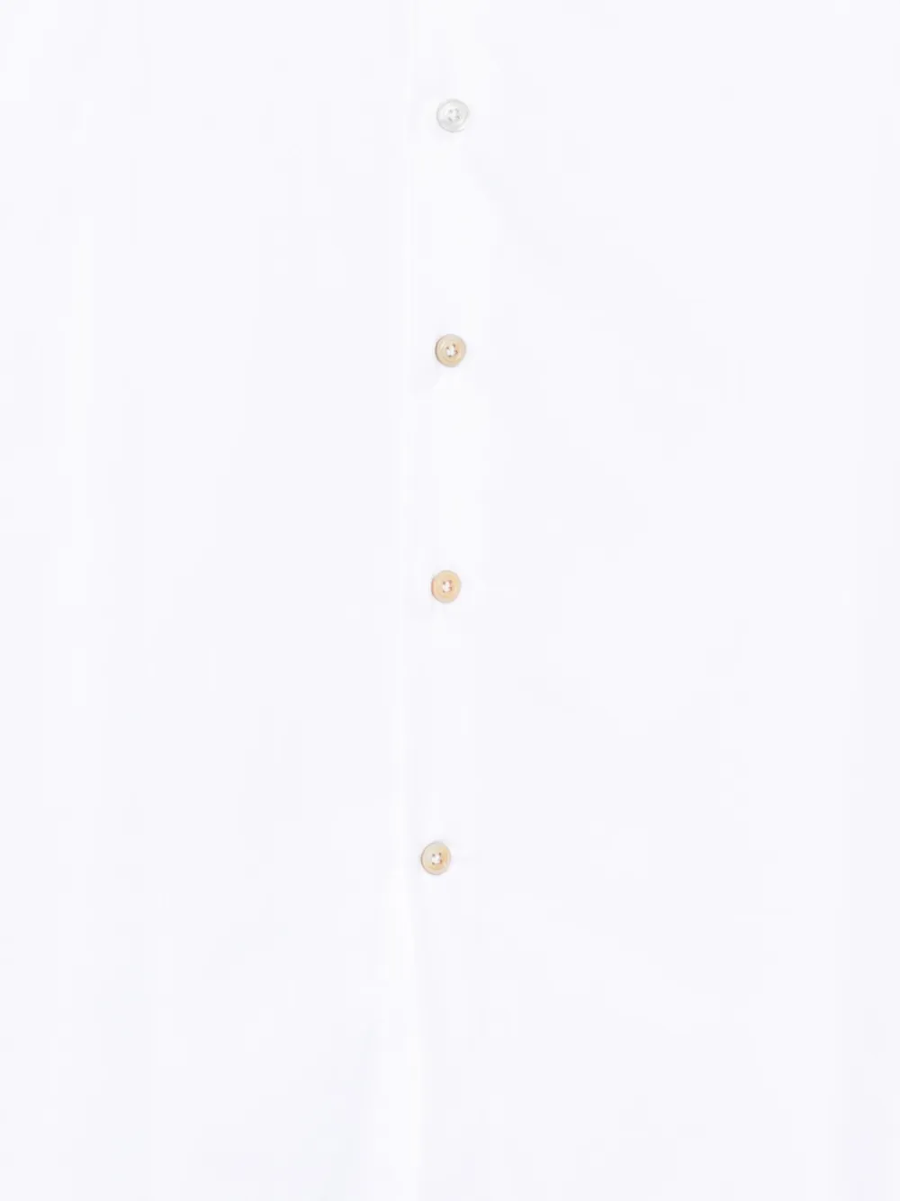 Белая рубашка с застежкой на пуговицы, длинными рукавами и закругленным подолом