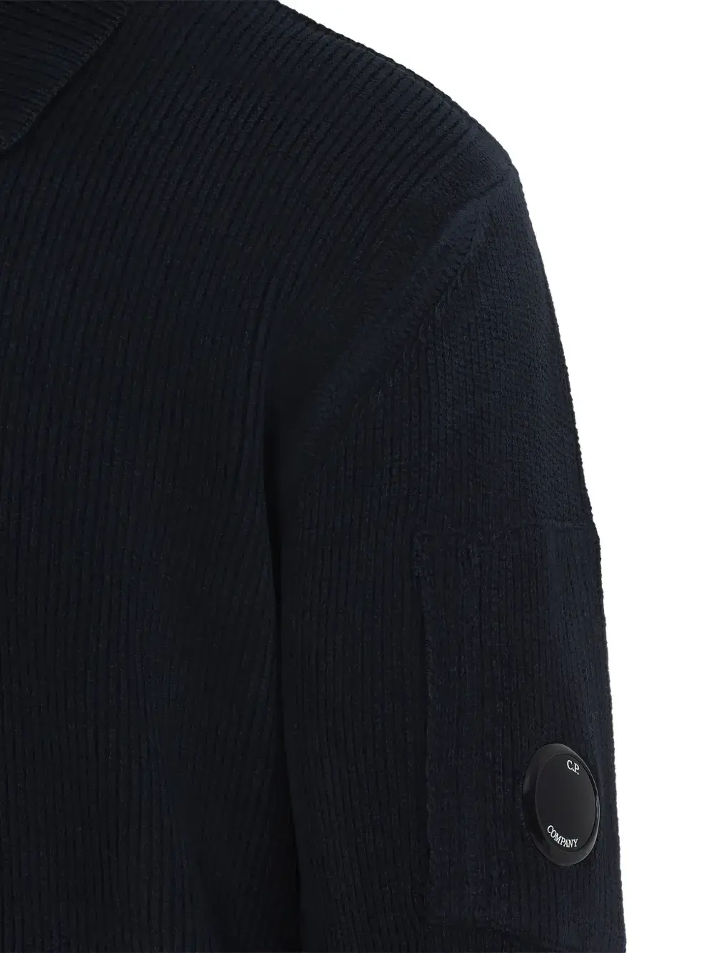 Темно-синее поло в рубчик с воротником-стойкой, застежкой на пуговицы, длинными рукавами и карманом с линзой. C.P. Company рекомендует снимать все съемные аксессуары перед стиркой.