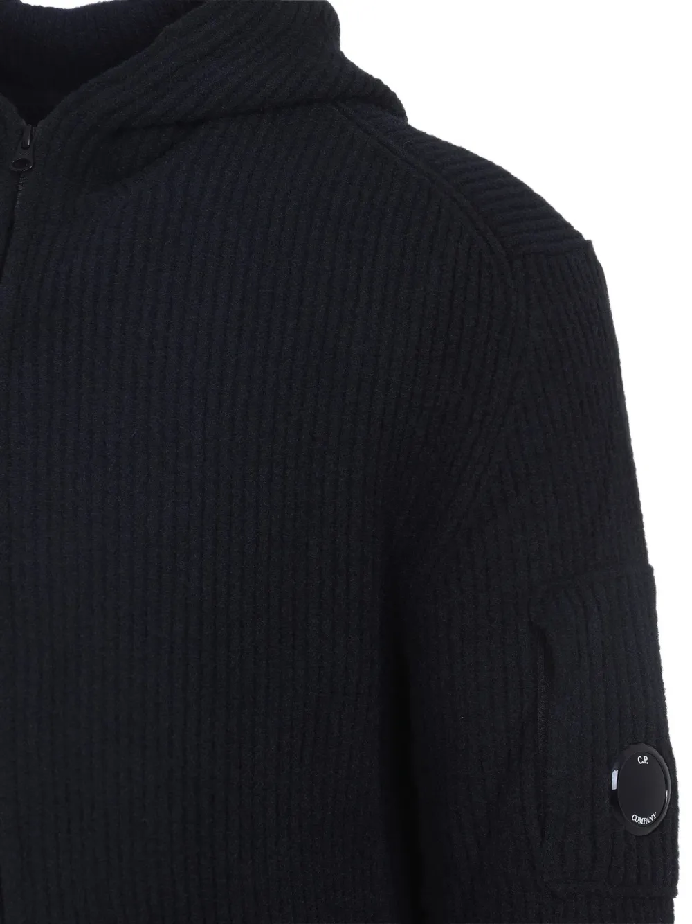 Капюшонный кардиган в рубчик на молнии C.P. Company, синий