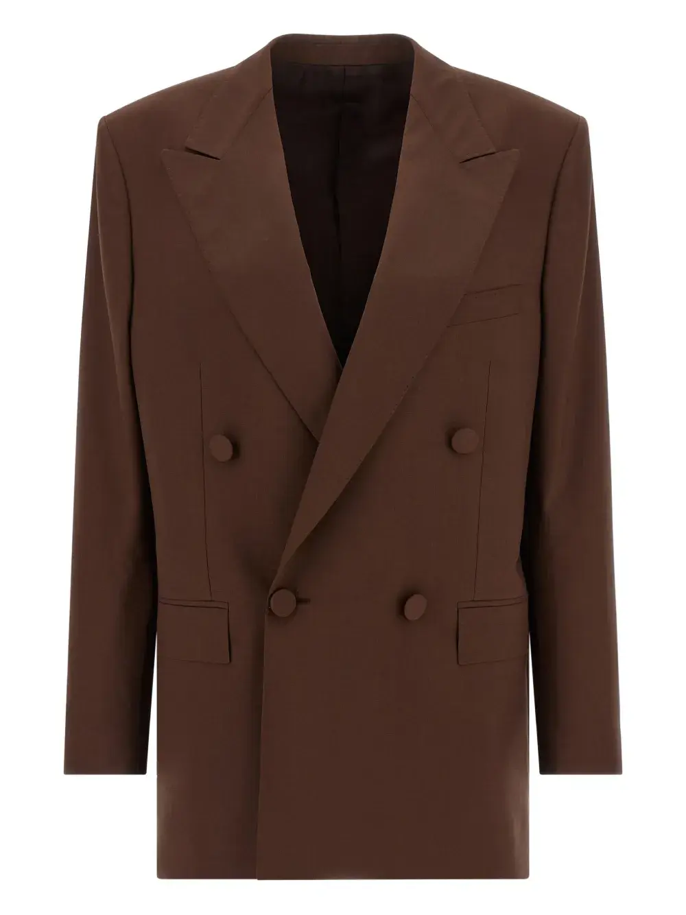 Коричневый застежка на двубортных пуговицах острые лацканы прорезные карманы с клапанами нагрудный карман длинные рукава