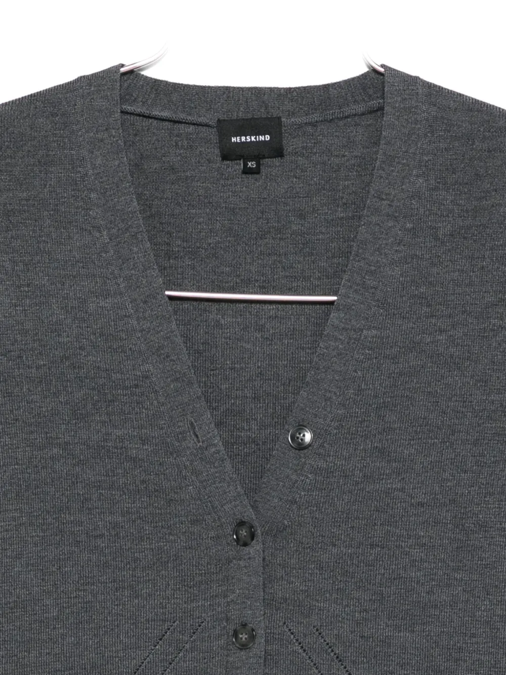 Серый V-образный вырез застежка на пуговицы спереди длинные рукава тональная строчка