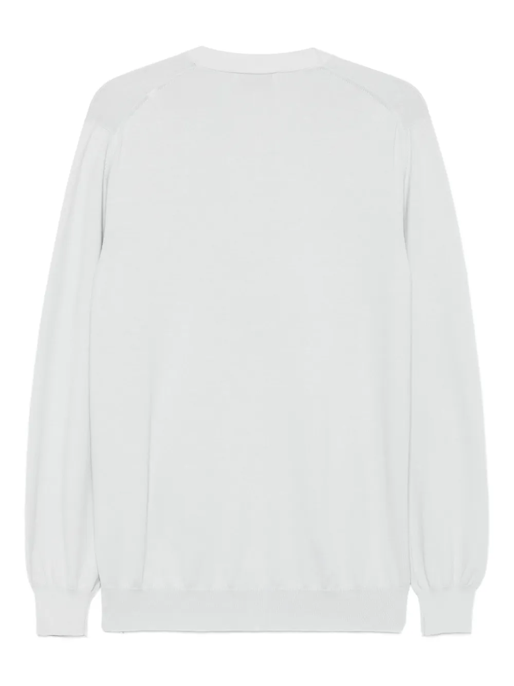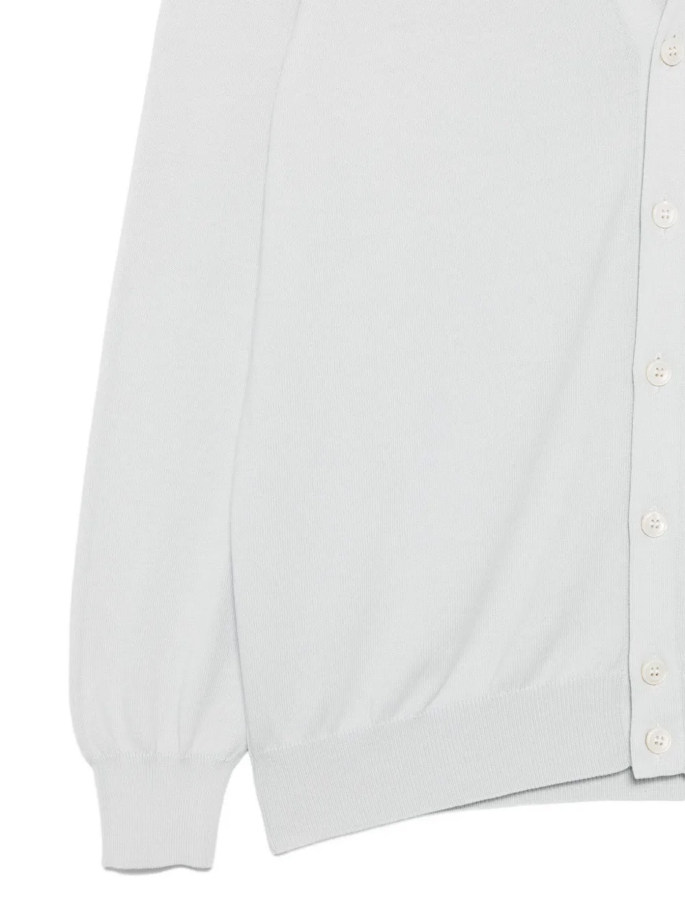 Светло-серый V-образный вырез застежка на пуговицах спереди длинные рукава рукава и нижний край в рубчик