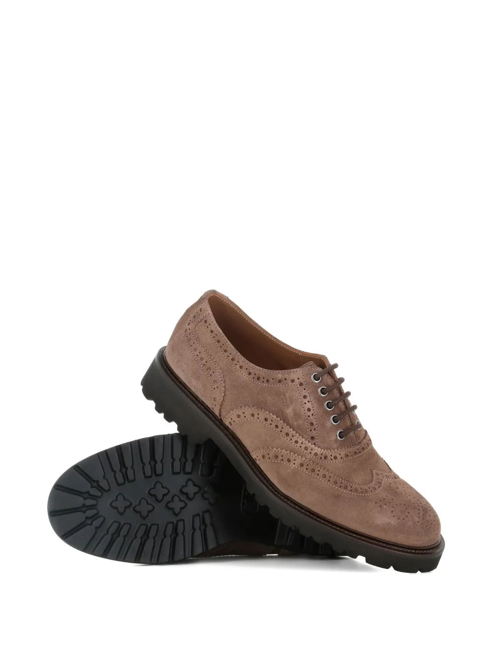 Коричневые замшевые кожаные ботинки на шнуровке с перфорацией и резиновой подошвой