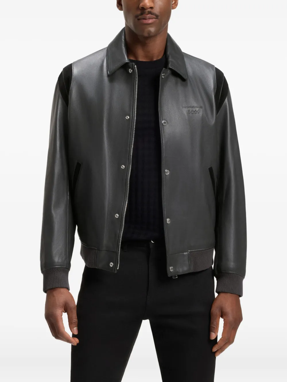Кожаная куртка-бомбер BOSS, серый