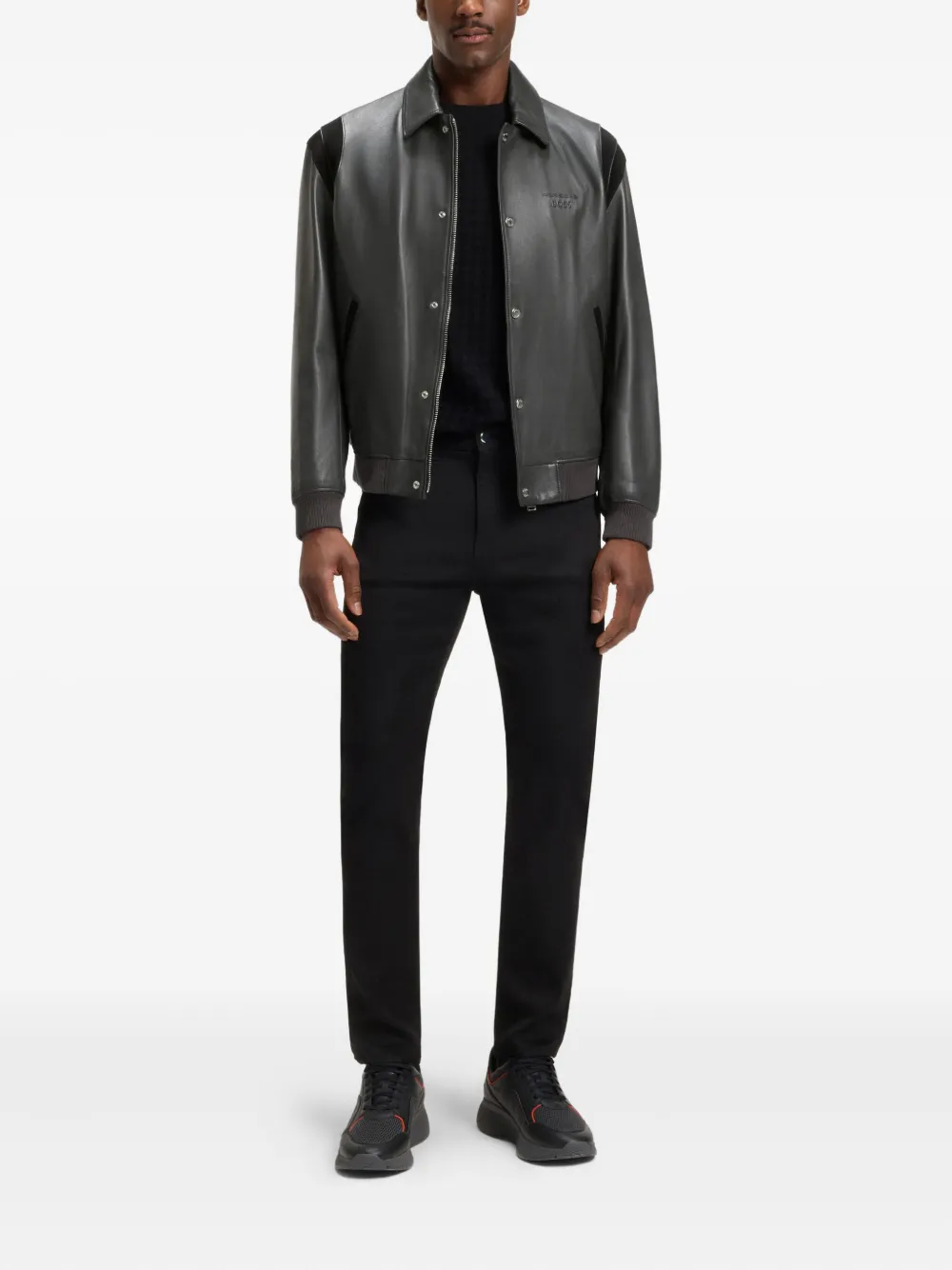 Кожаная куртка-бомбер BOSS, серый 121 259₽
