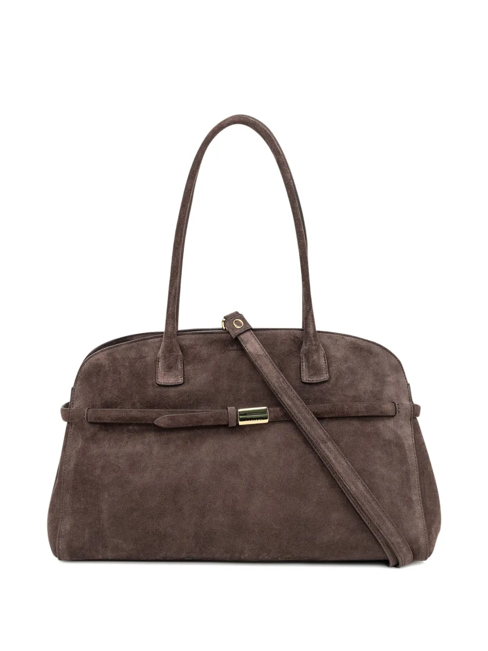 Темно-коричневый, две верхние ручки, регулируемый съемный плечевой ремень, фурнитура золотистого цвета, декоративная пряжка
