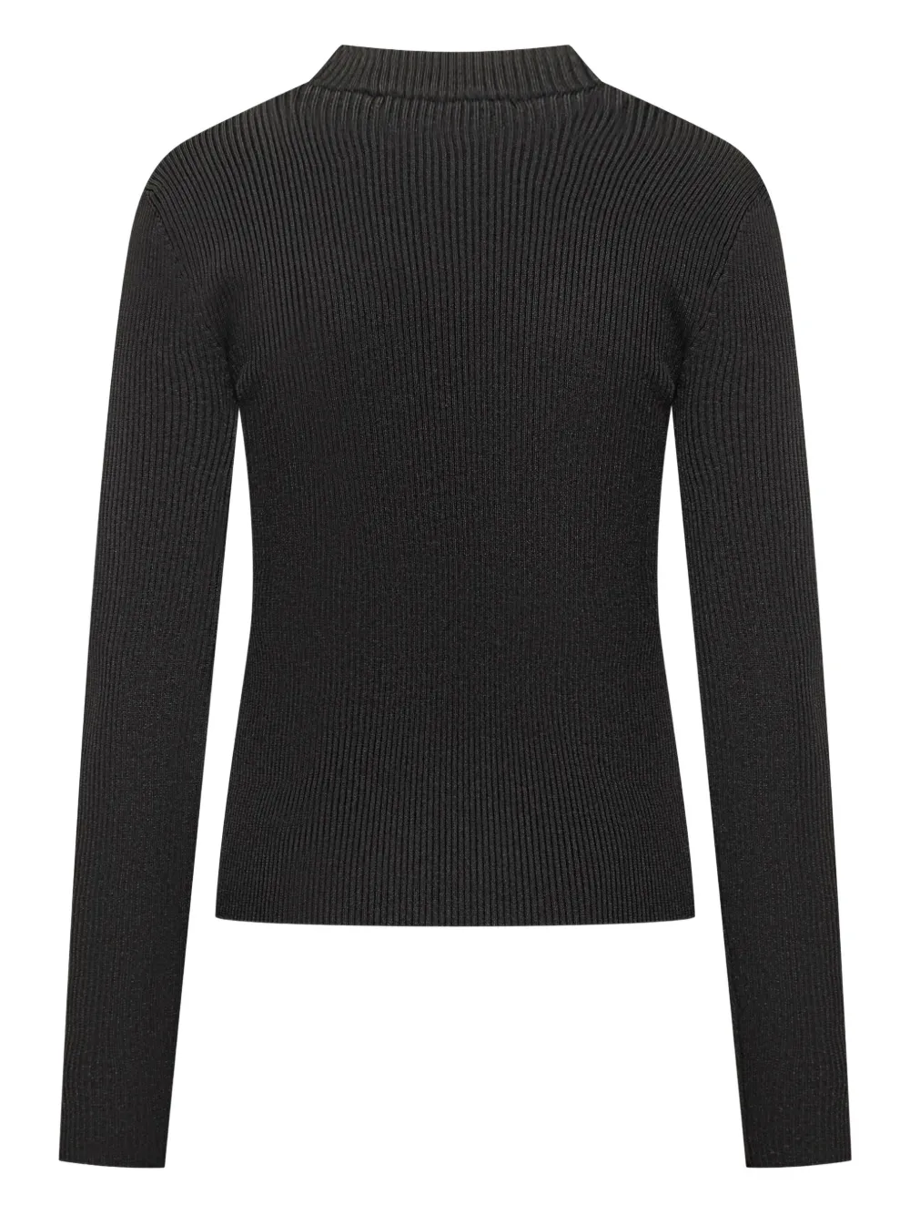 Черный вязаный в рубчик длинные рукава круглый вырез прямой низ