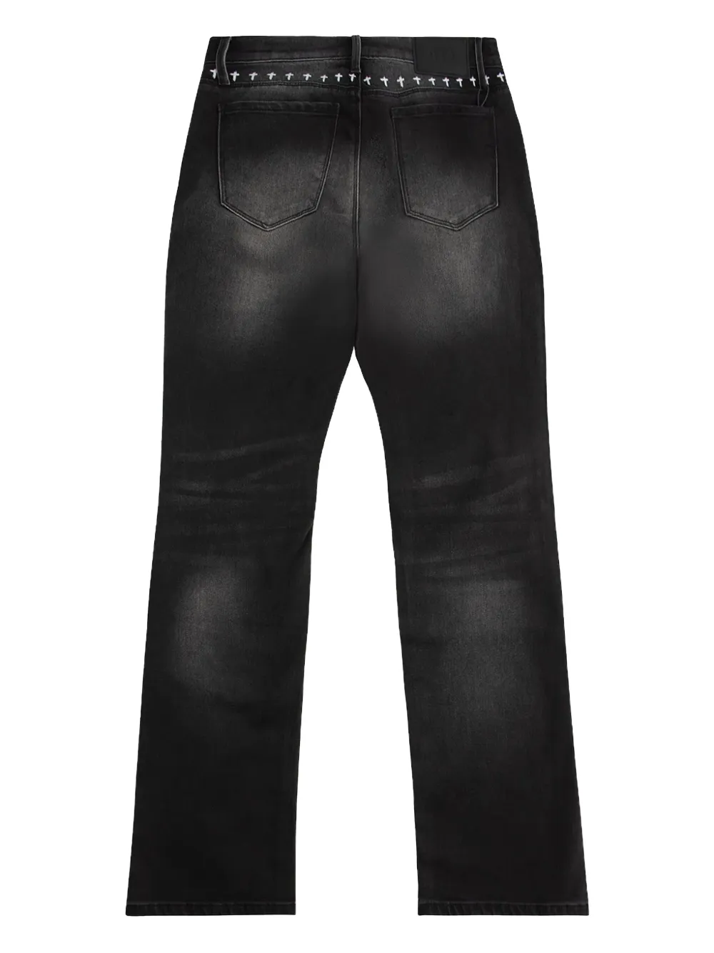 Черный застежка на пуговицу и молнию спереди классические пять карманов потертости расклешенные штанины шлевки для пояса