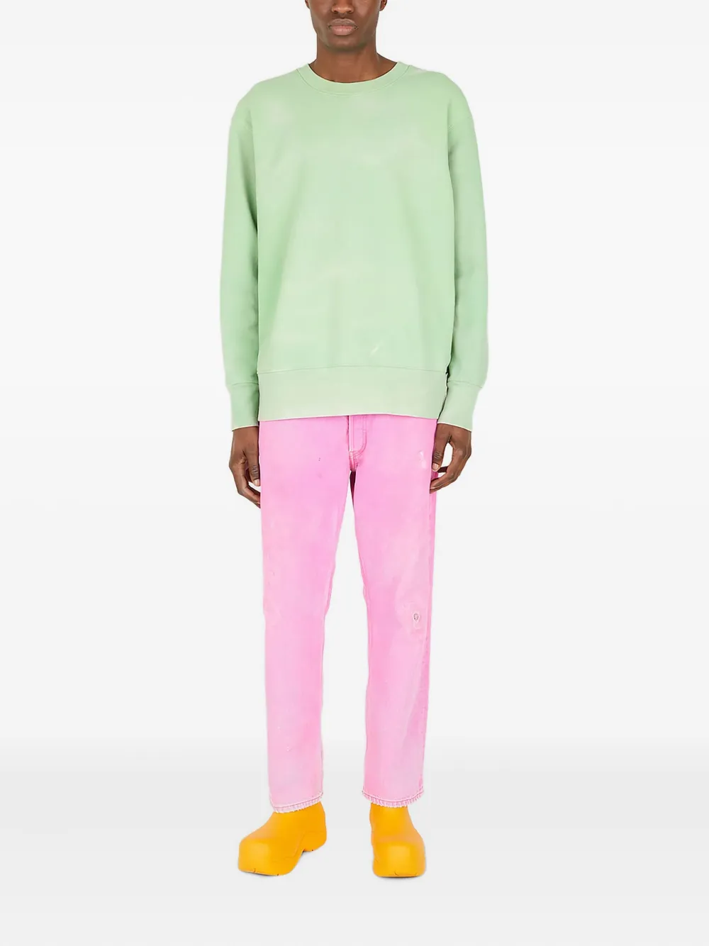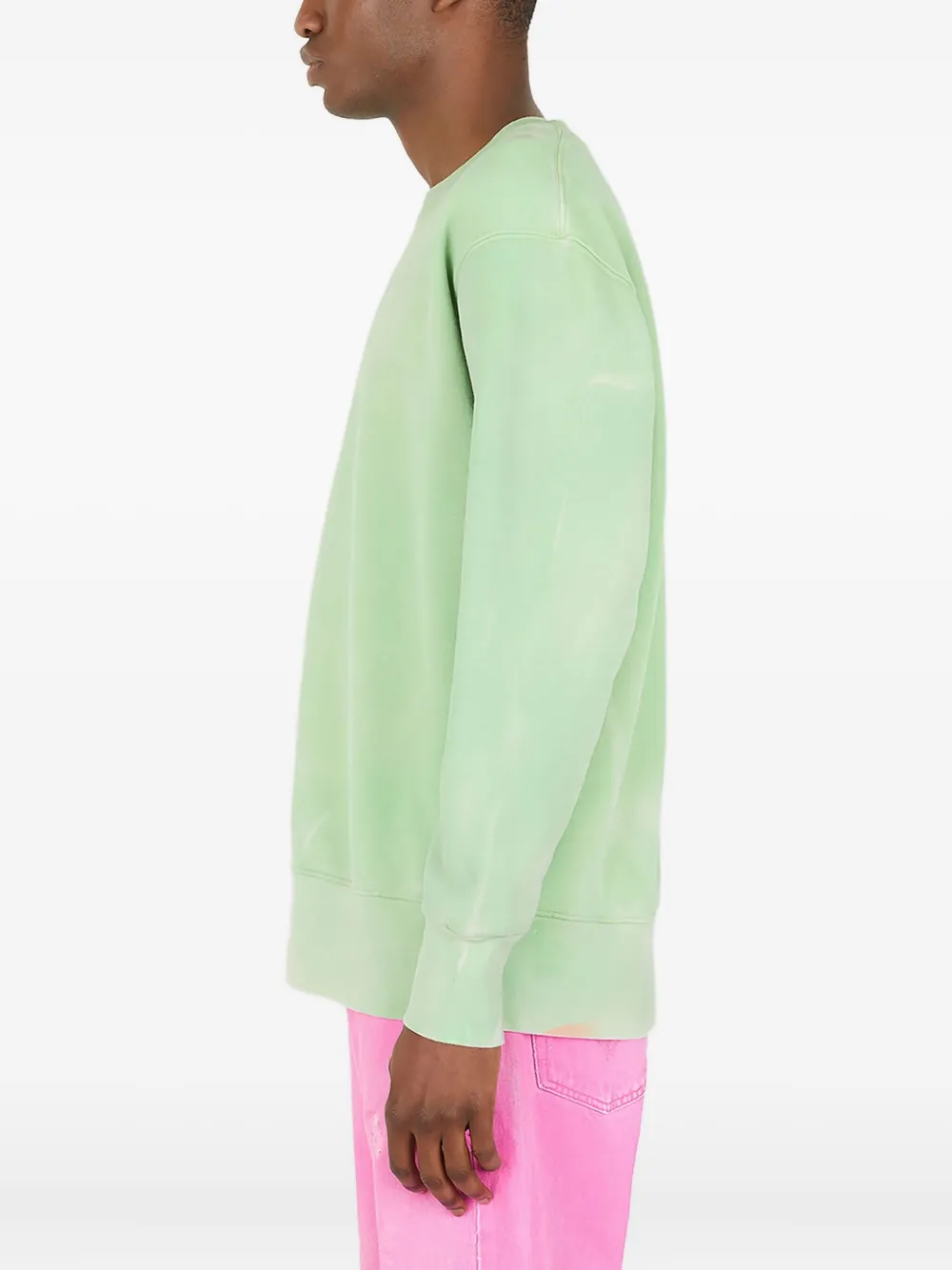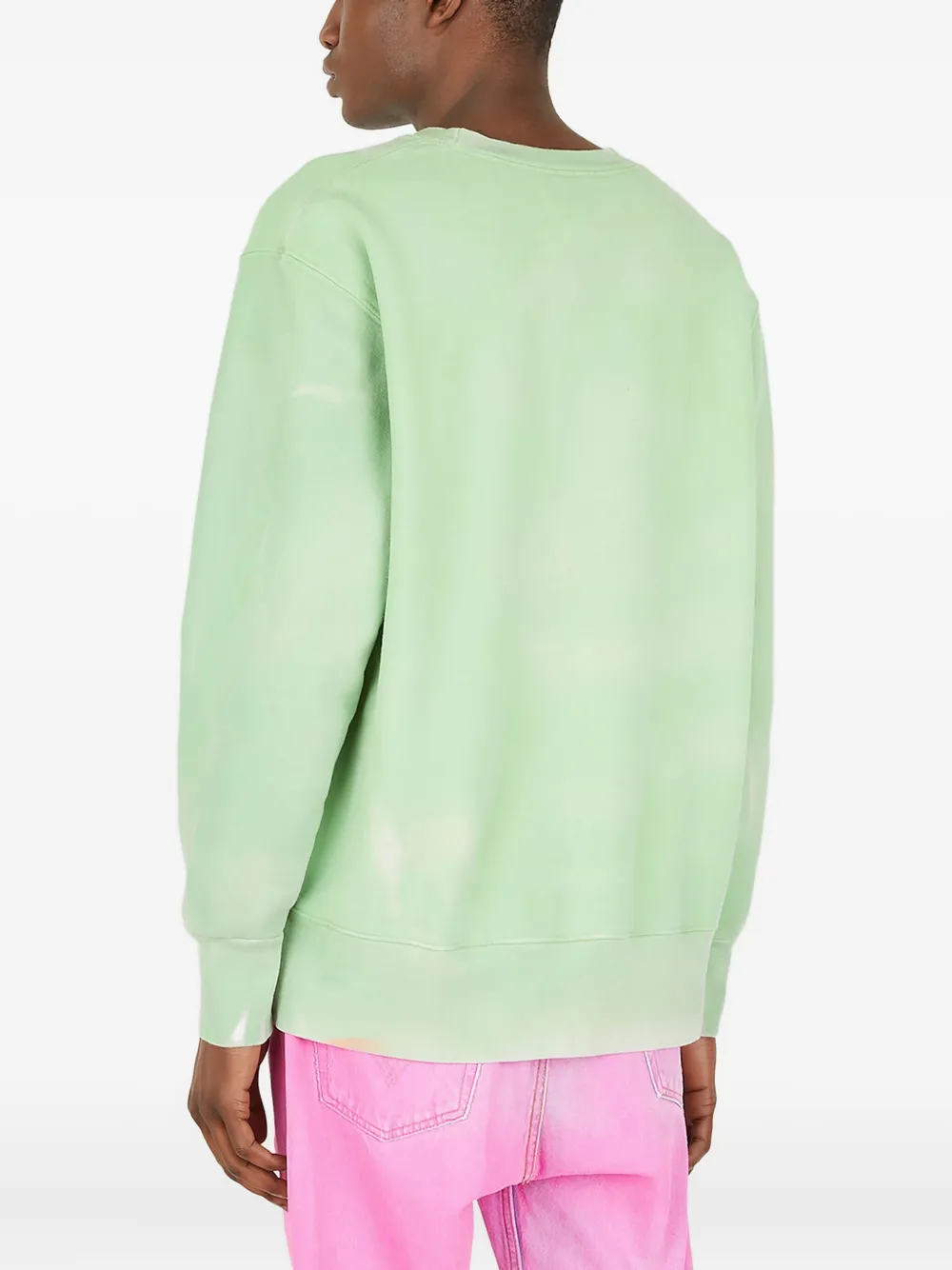Светло-зеленый свитшот из органического хлопка с круглым вырезом, заниженными плечами, длинными рукавами, трикотажной отделкой и полностью выполненным вручную окрашенным узором