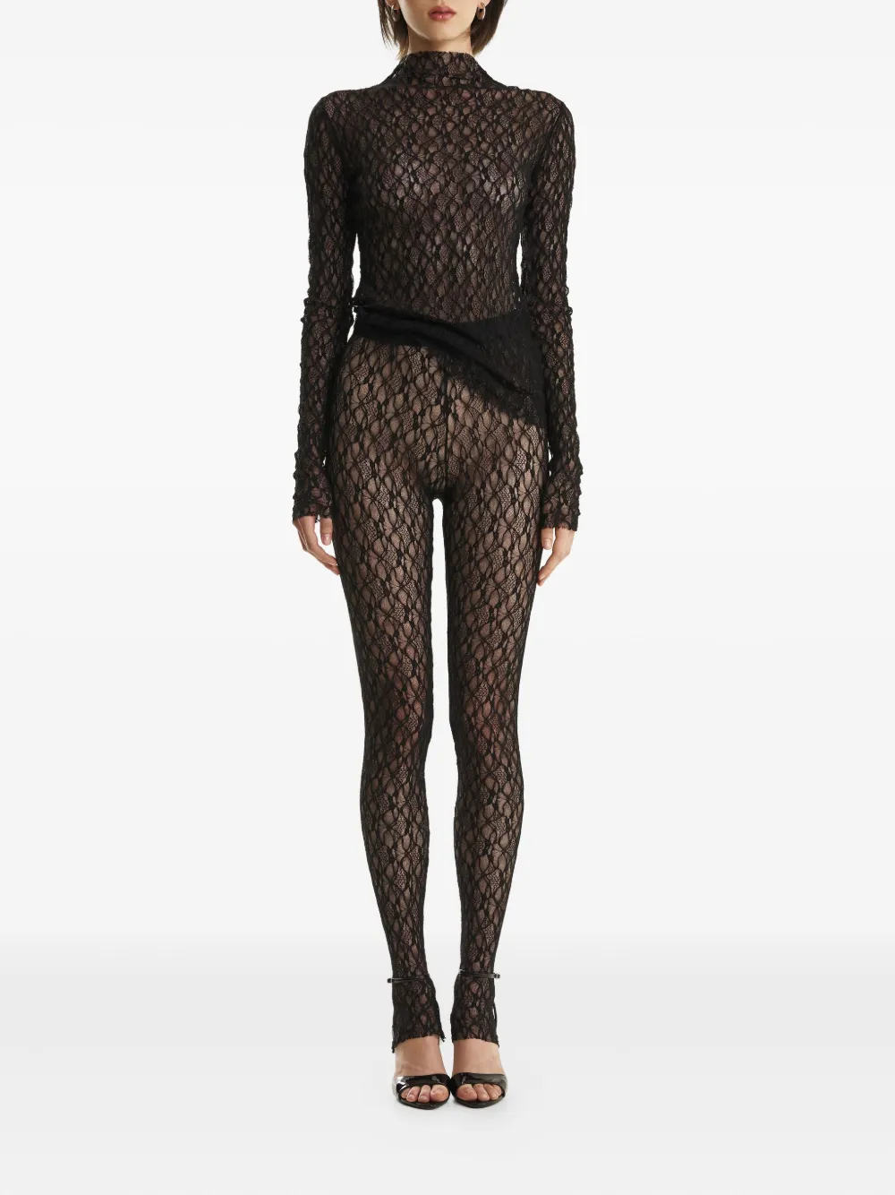 Черные прозрачные высокие трусы с узором