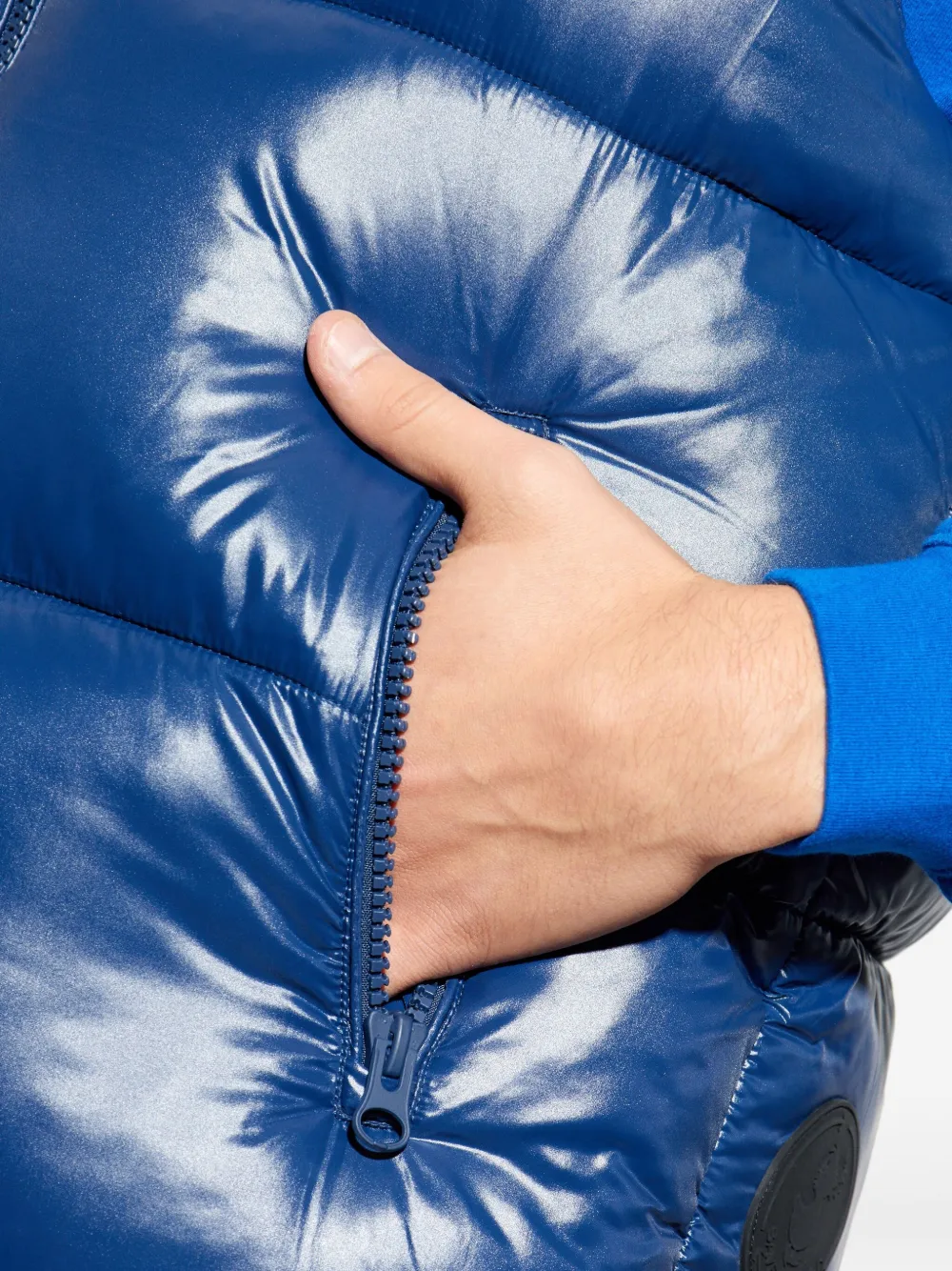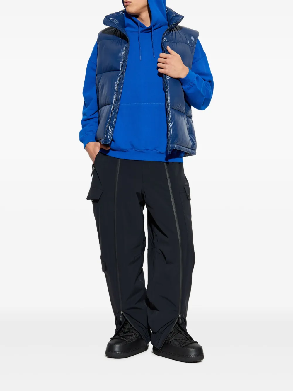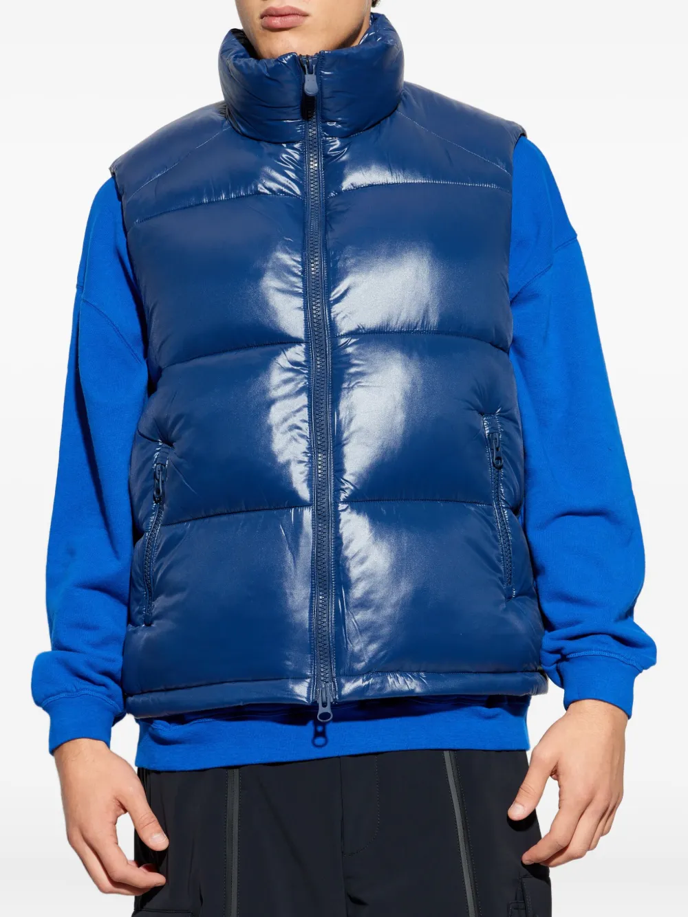 Синий жилет с подкладкой, высоким воротником, застежкой-молнией, без рукавов, с карманами на молнии