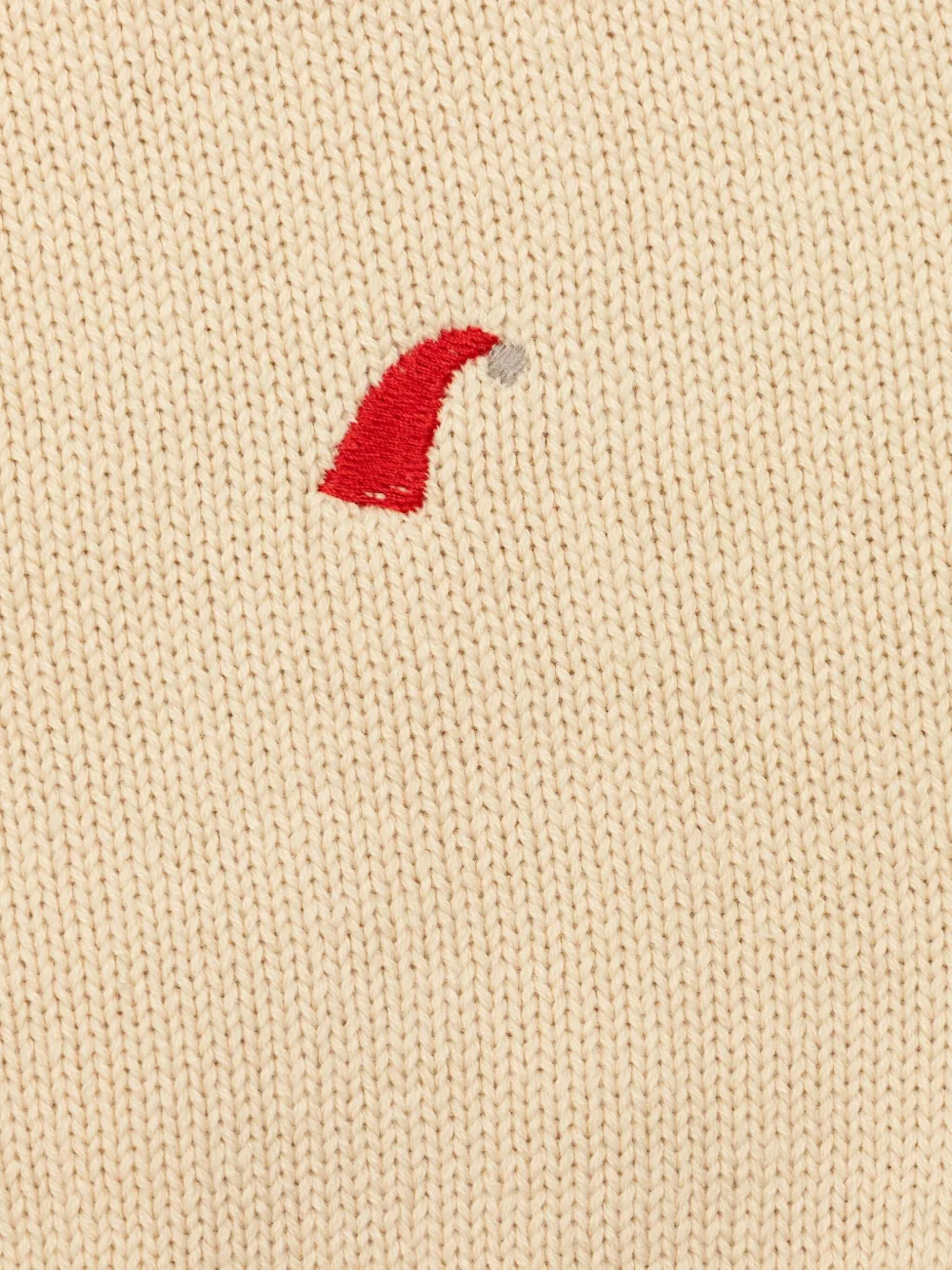 Кремовый свитер с вышивкой, круглый вырез, длинные рукава, ребристый нижний край, ребристые манжеты
