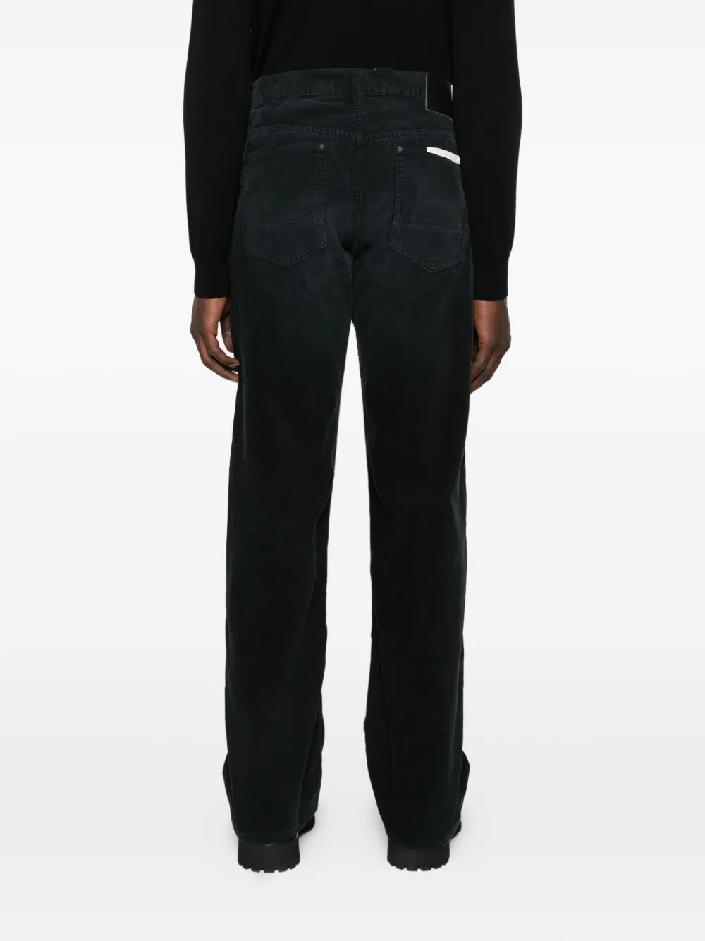 Черный вельвет застежка на пуговицу и молнию спереди классические пять карманов прямые брючины шлевки для ремня