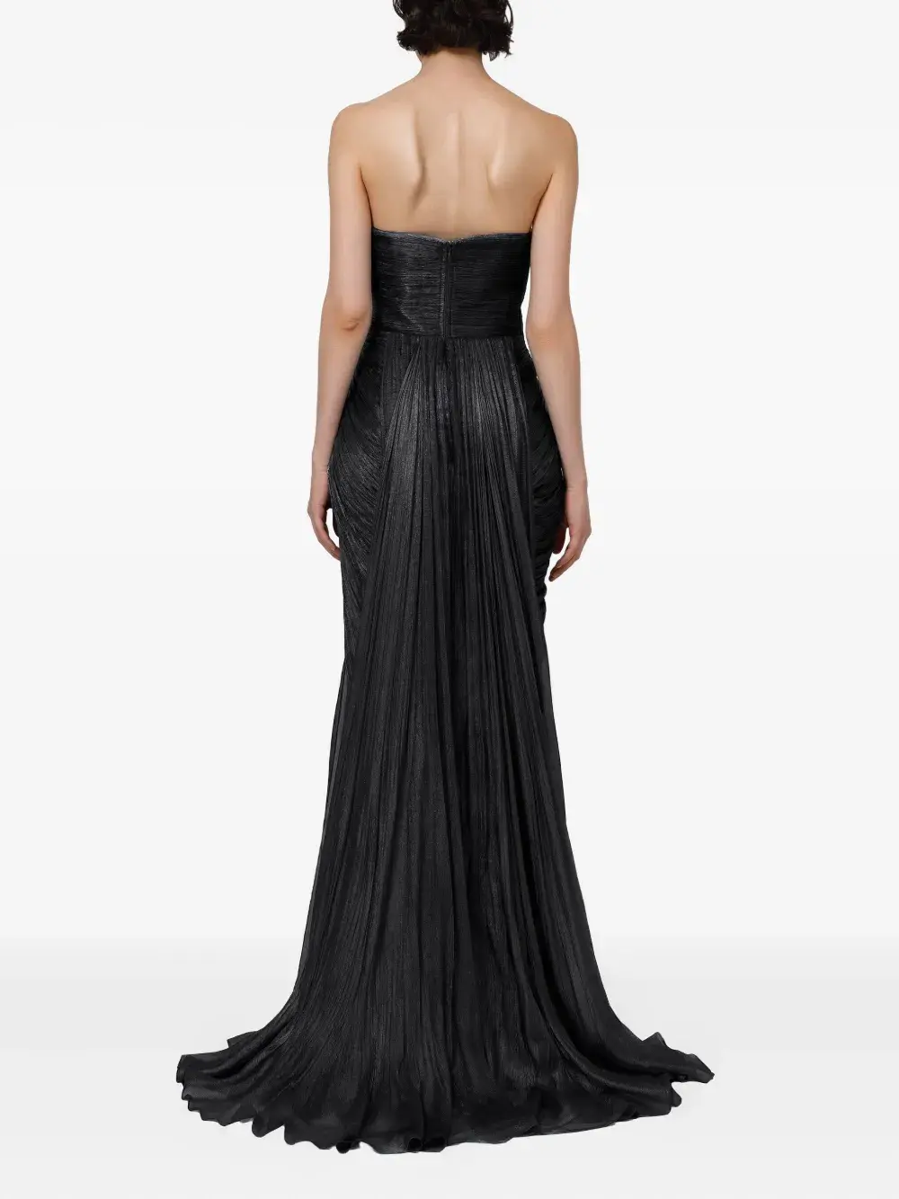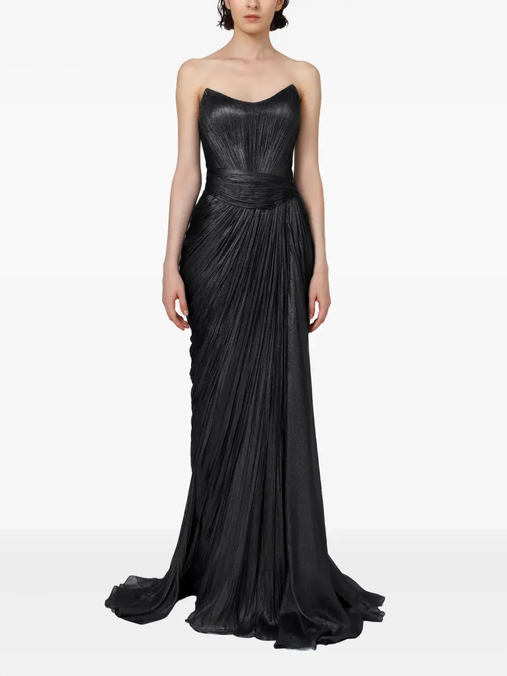 Черный плиссированный лиф драпированная юбка вырез «бандо» (без бретелек) приталенный крой