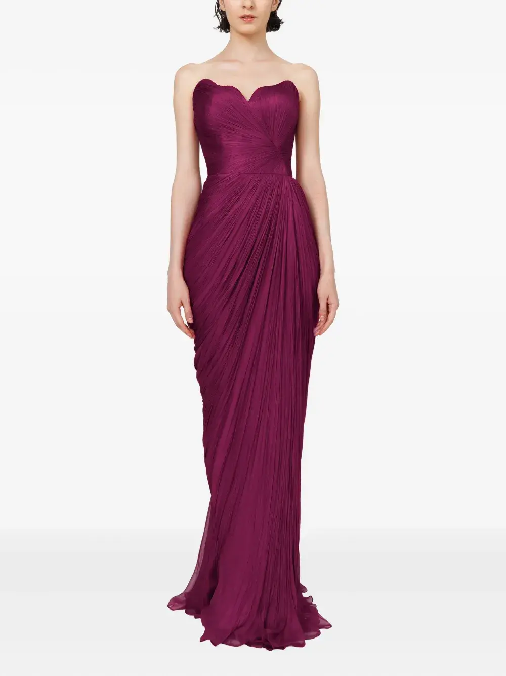 Бордовый плиссированная отделка вырез «сердечко» без бретелек драпированный лиф в пол