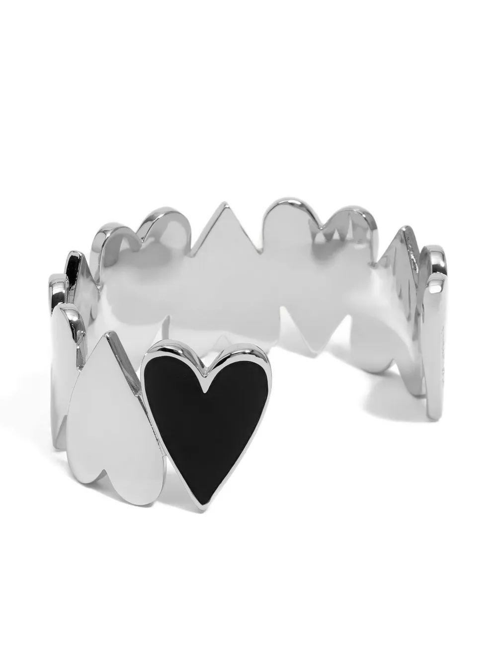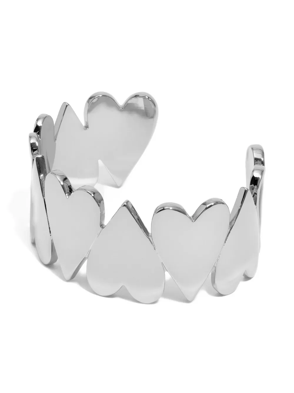 Серебристый браслет-кафф с открытым концом и множеством сердец