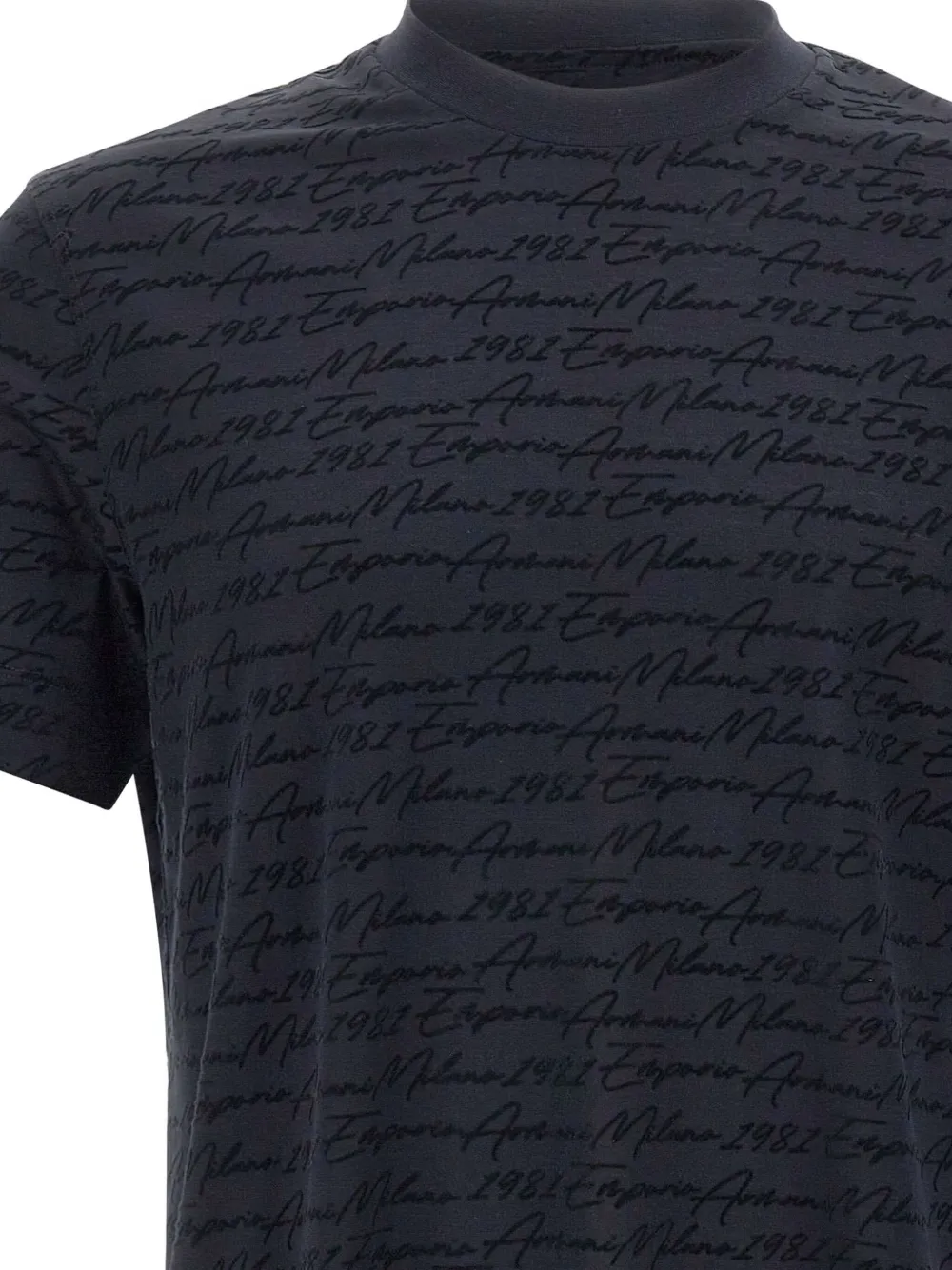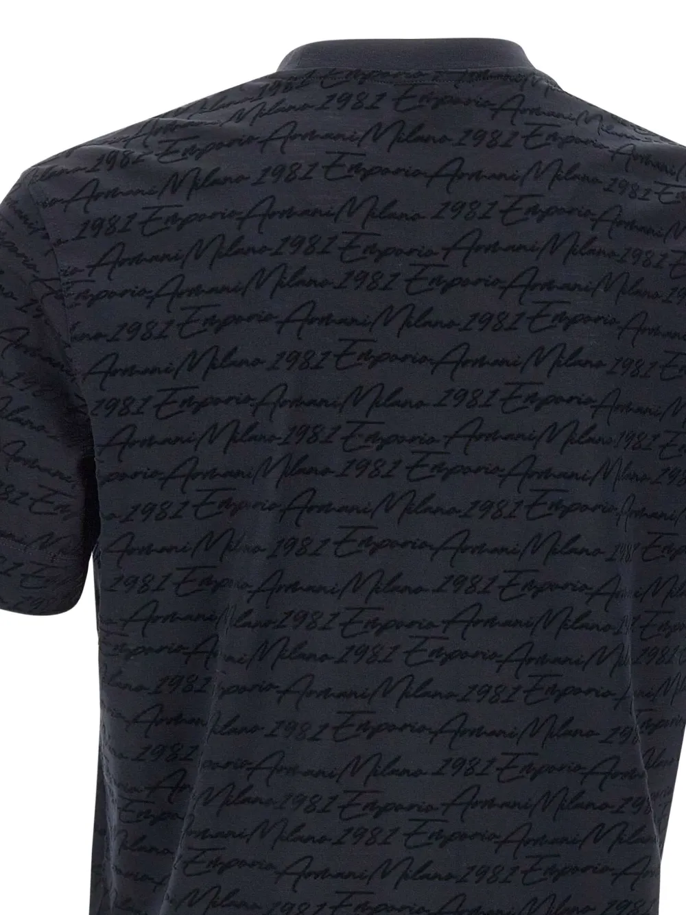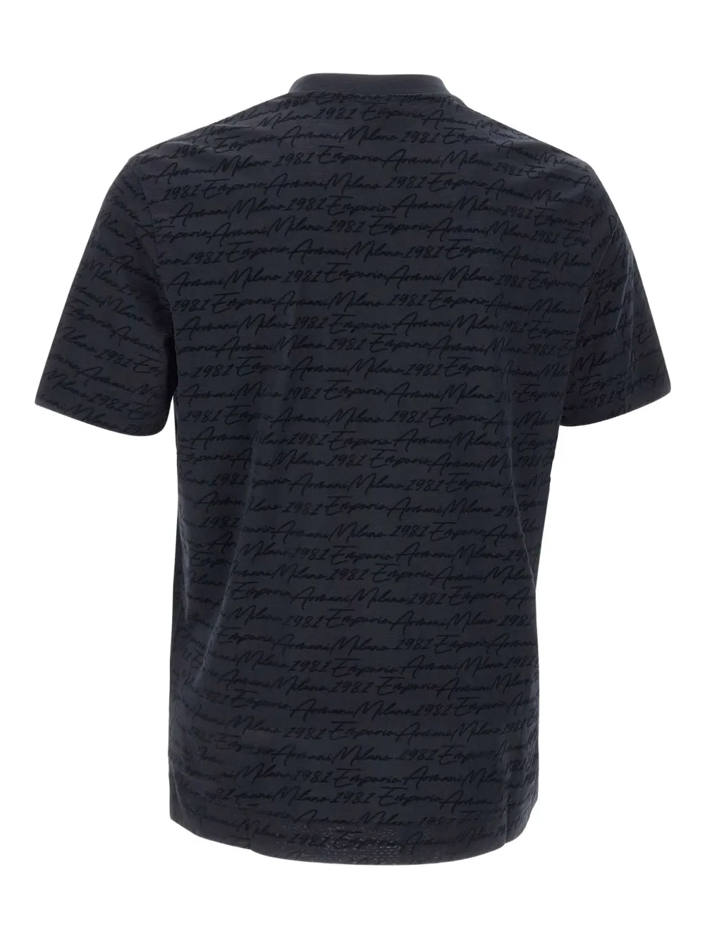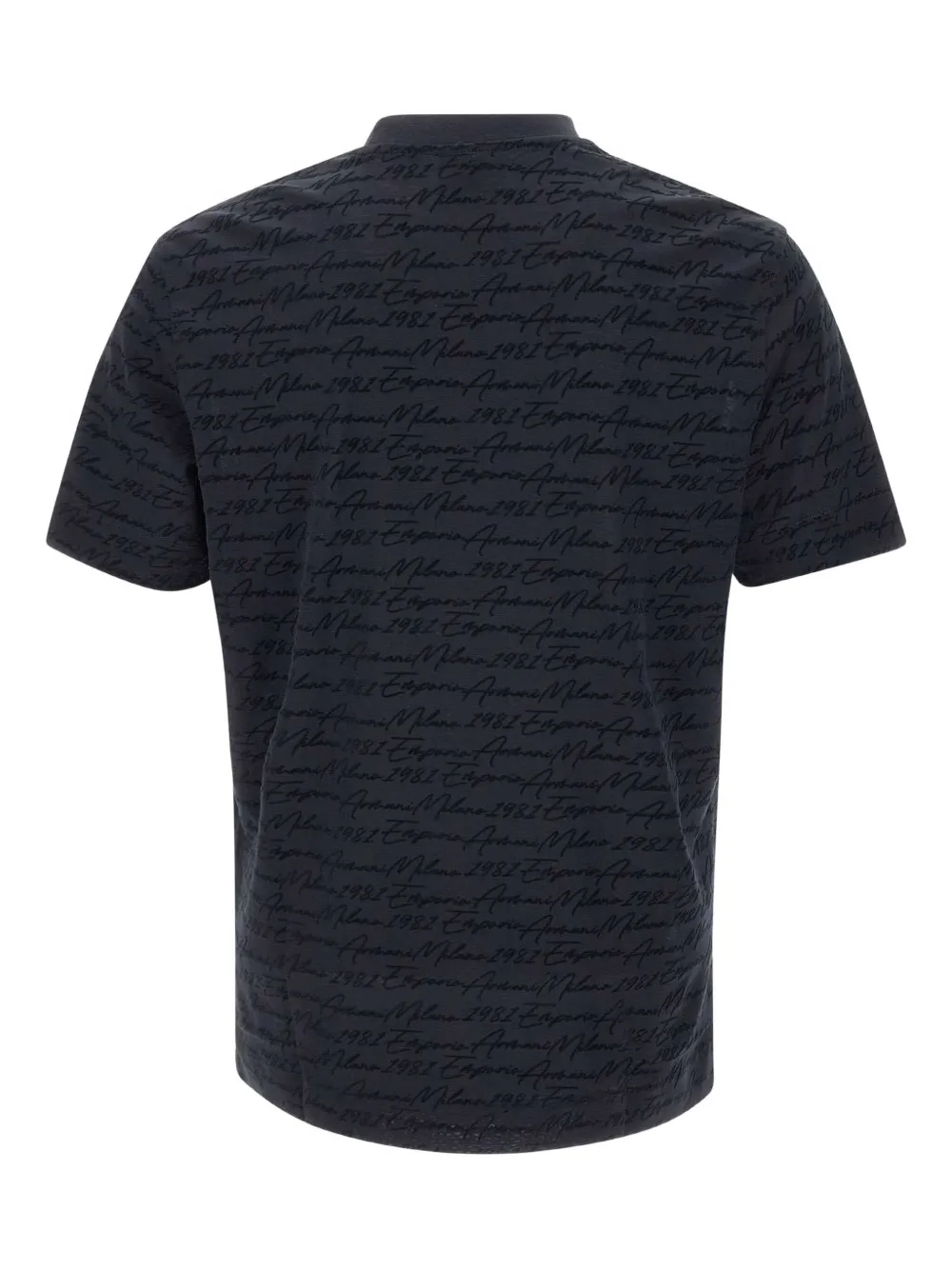 Темно-синий короткие рукава круглый вырез везде принт с логотипом