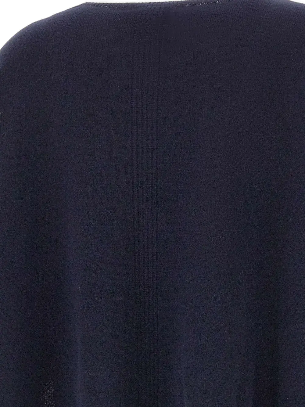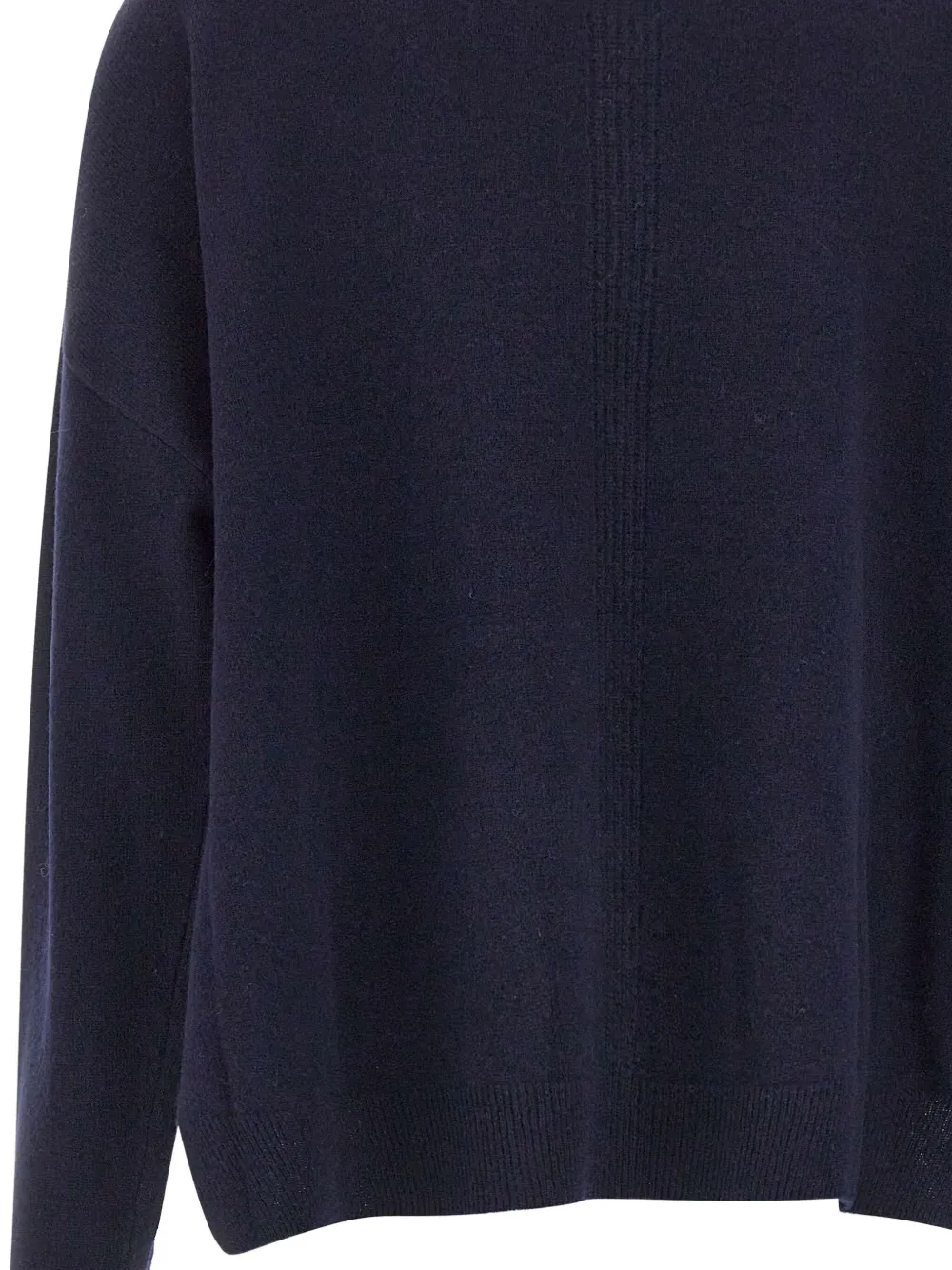 Темно-синий ворот-лодочка рукава-реглан вязаная отделка шерсть