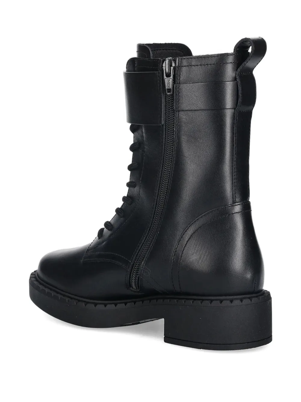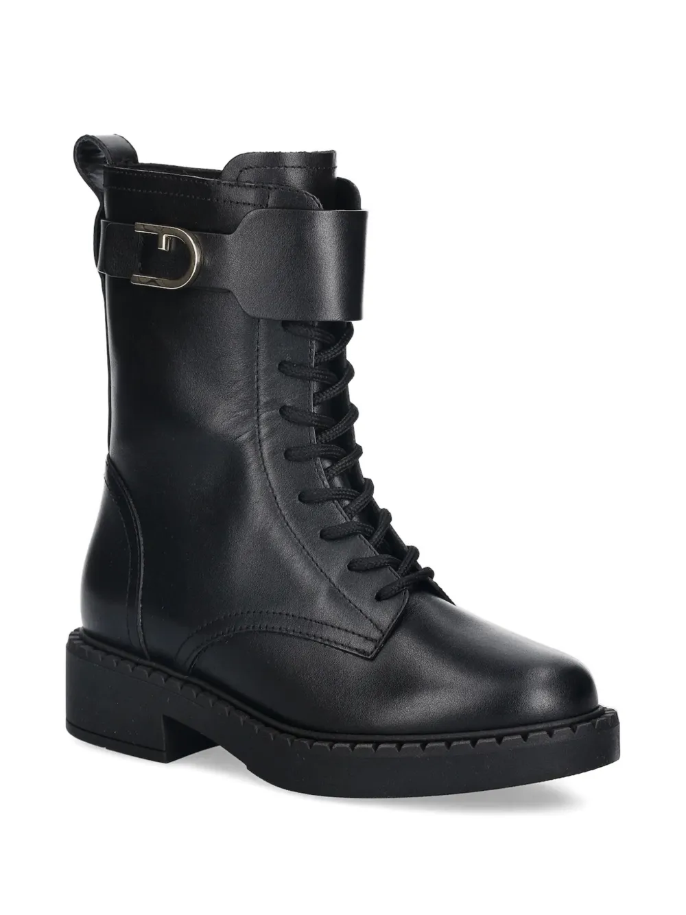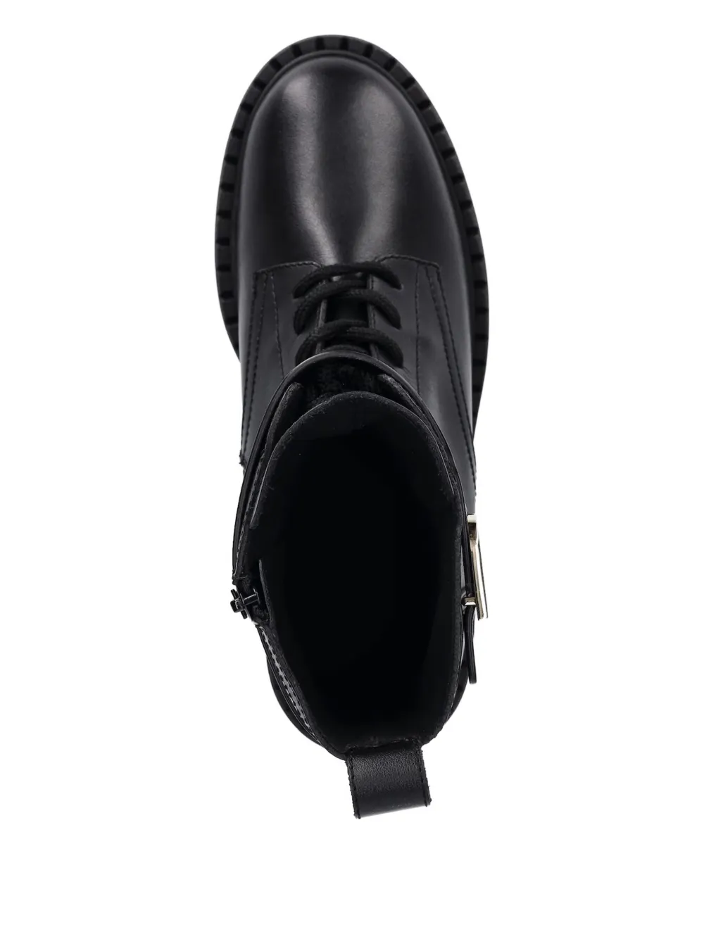 Черный кожаный верх, шнуровка, застежка на пряжку, плоская подошва