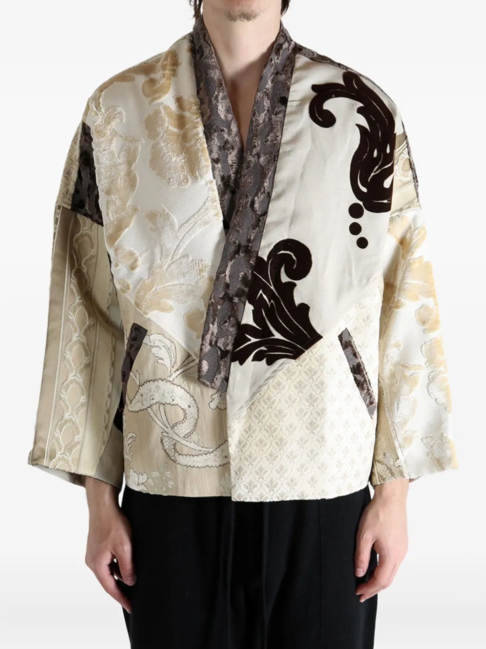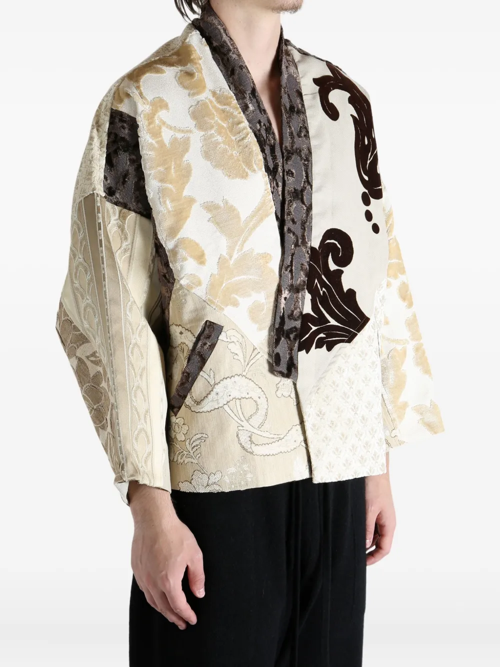 Бежевый узор дамаск цветочный узор открытый фасон дизайн в стиле пэчворк