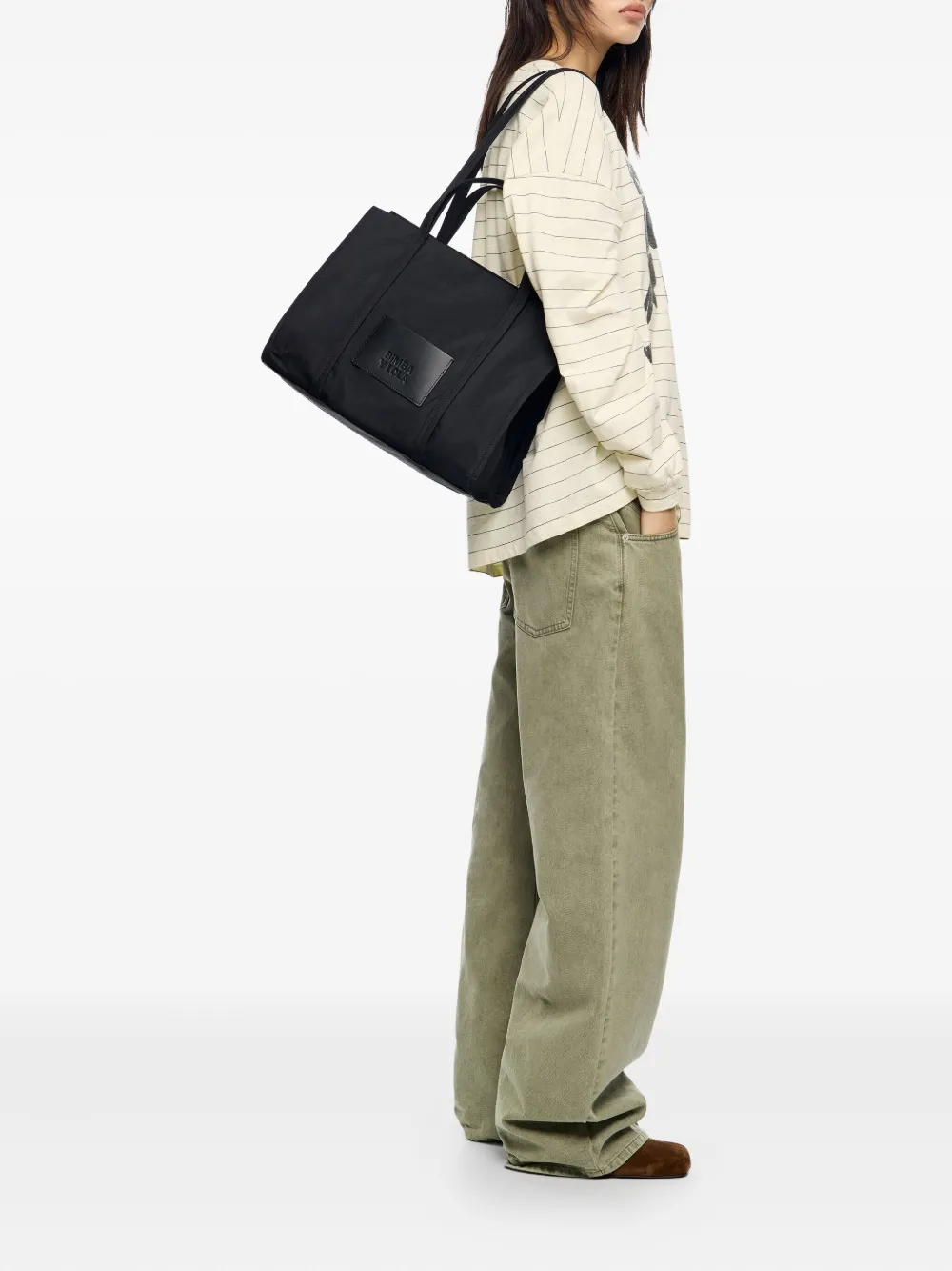 Черные двойные верхние ручки, прямоугольная форма, нашивка с логотипом, плоское основание