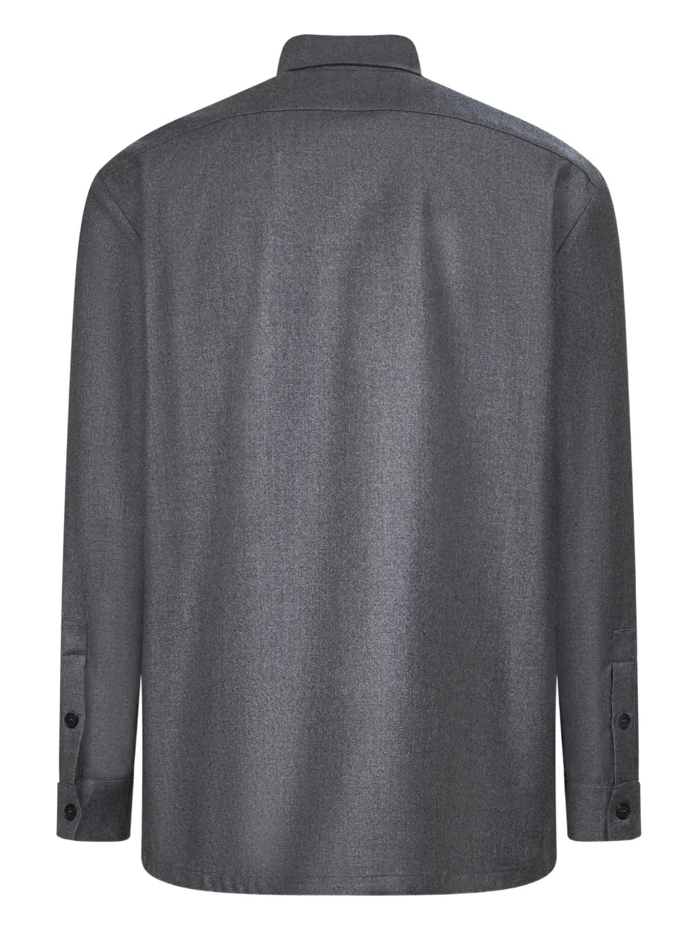 Серый планка с потайными пуговицами рубашечный воротник длинные рукава манжеты на пуговицах накладной карман с клапаном