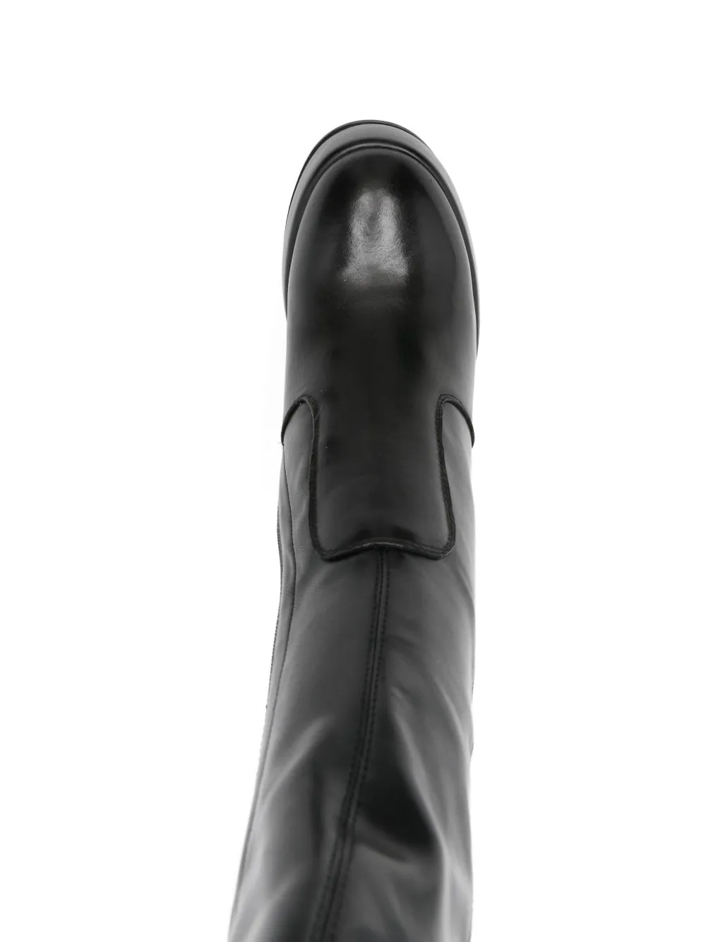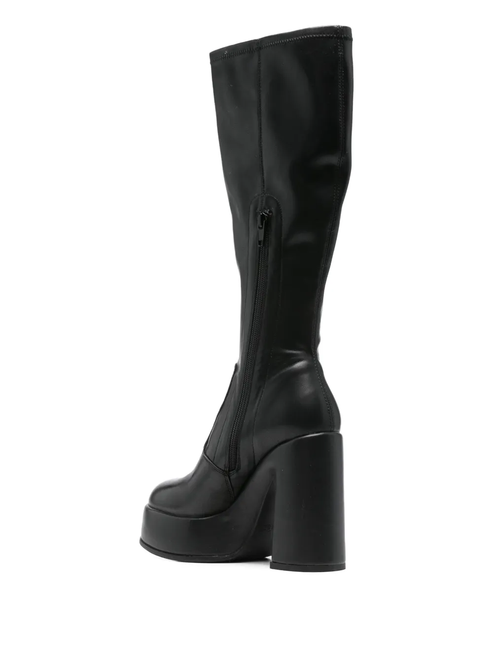 Черный платформенная подошва каблук-столбик застежка-молния сбоку до колена однотонная строчка