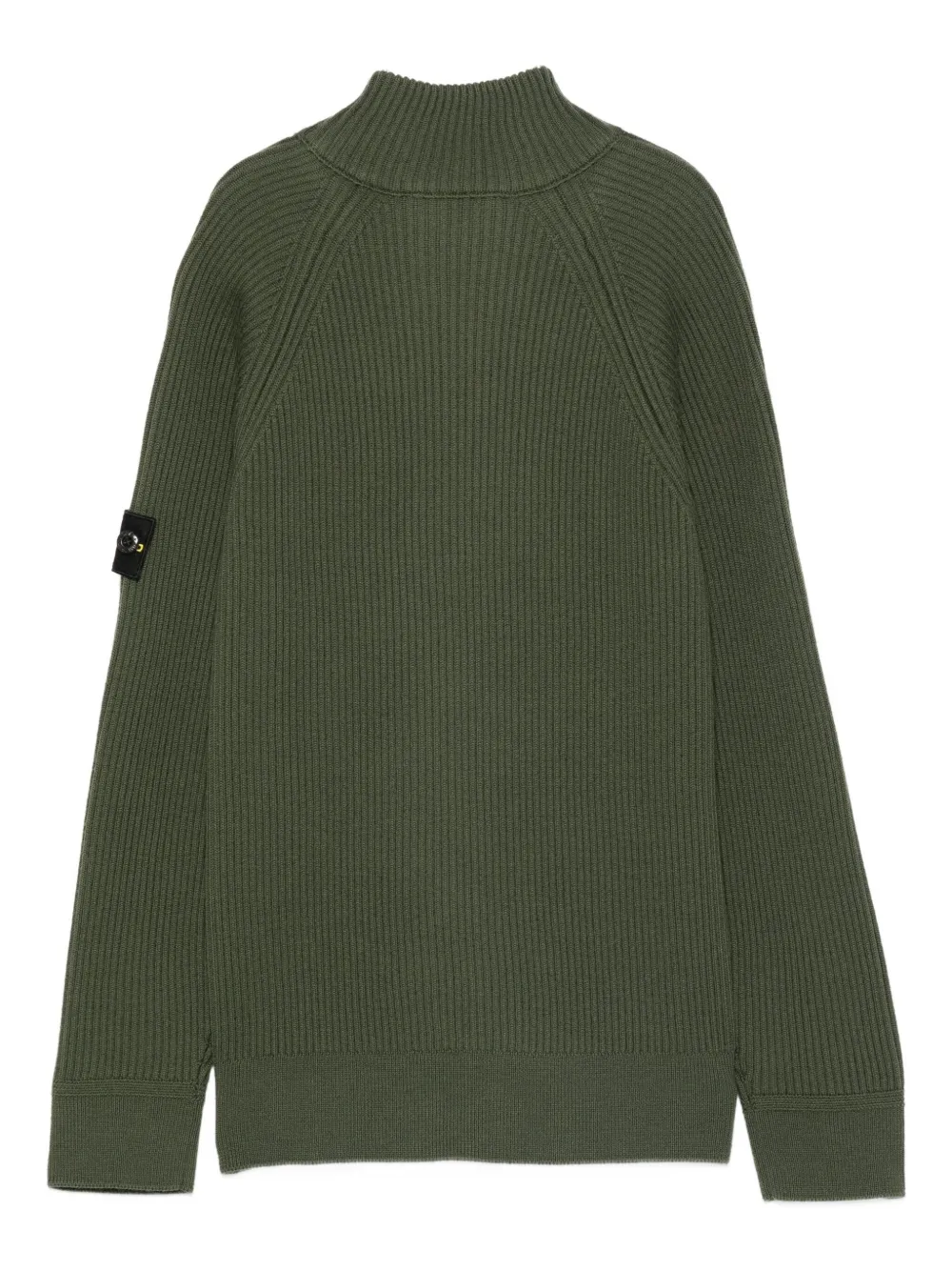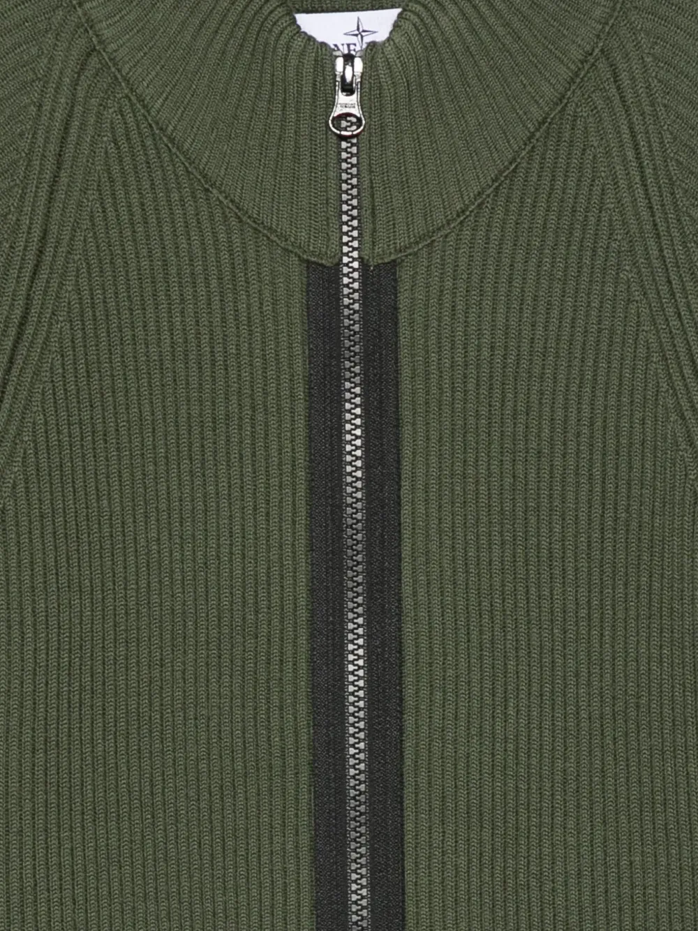 Зеленый вязаный трикотаж с ребристой текстурой, патч с логотипом, высокий воротник, застежка-молния