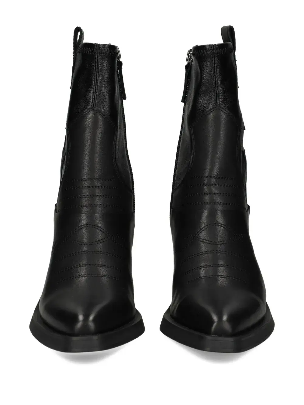 Черные кожаные ботильоны с застежкой-молнией сбоку, на толстом каблуке и с заостренным носком