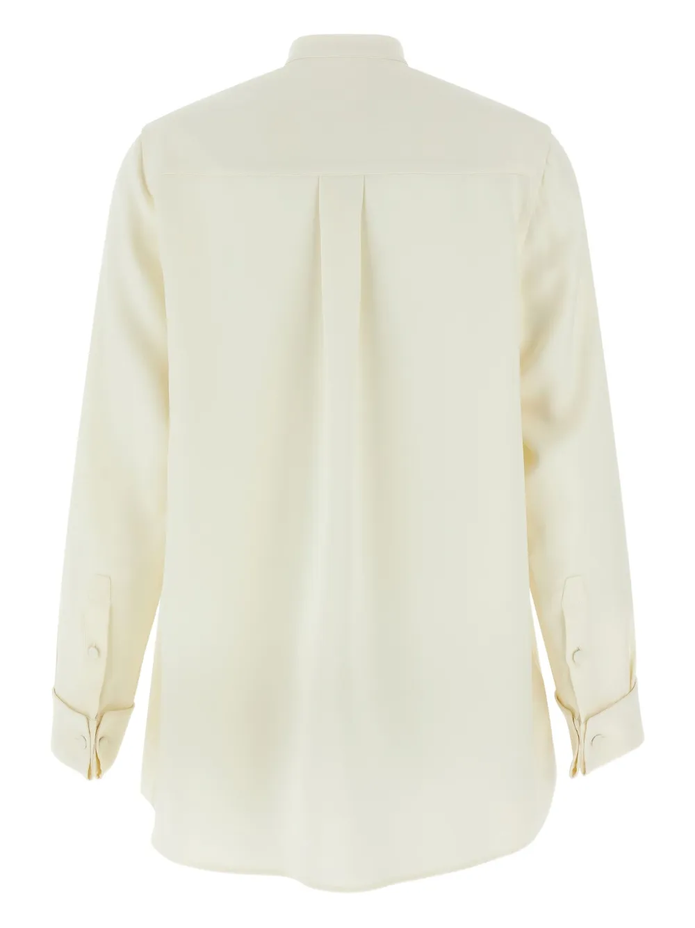 Белый шелк застежка спереди длинные рукава манжеты на пуговицах